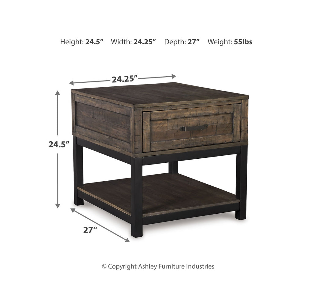 Combining a two-tone finish with a gently distressed texture produces one very distinctive end table. Whether your style is modern farmhouse or urban industrial, this end table is the perfect accent for your rustic retreat. | Product Features