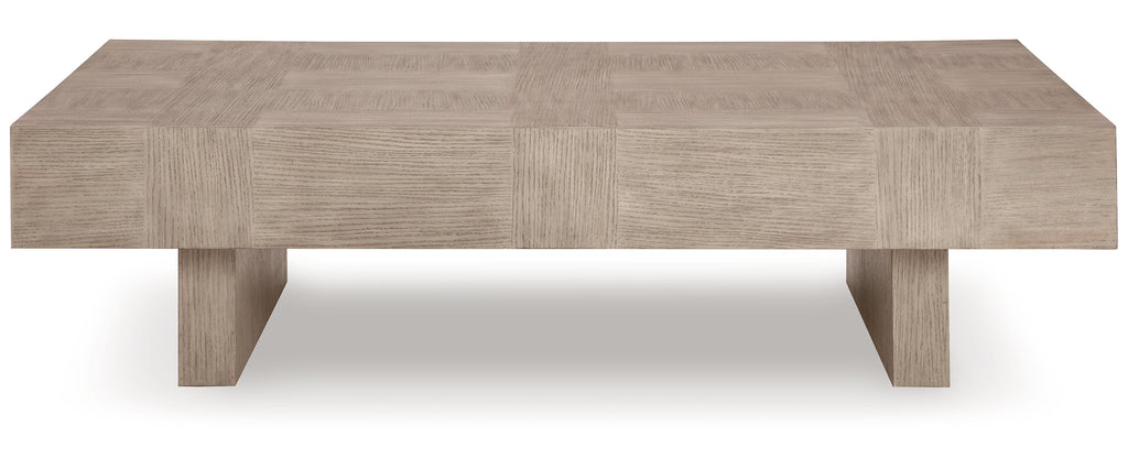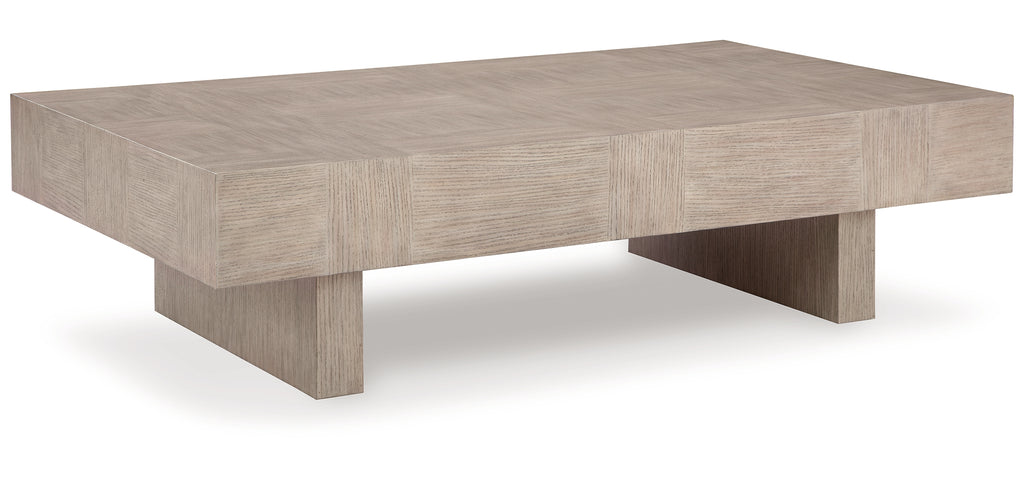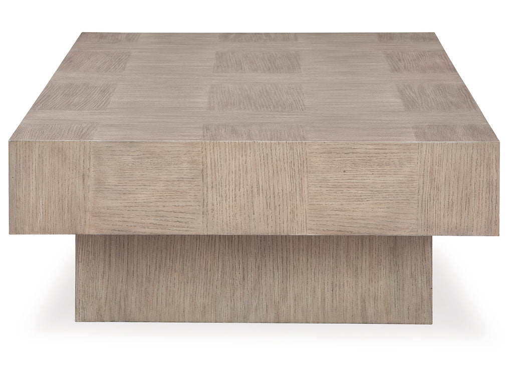 This striking coffee table looks equally at home in traditional or modern settings. A textural light gray finish offers a casual modern look, while the double plinth base exudes a classically contemporary sensibility. This timeless design adds a transitional touch that's sure to serve you well.