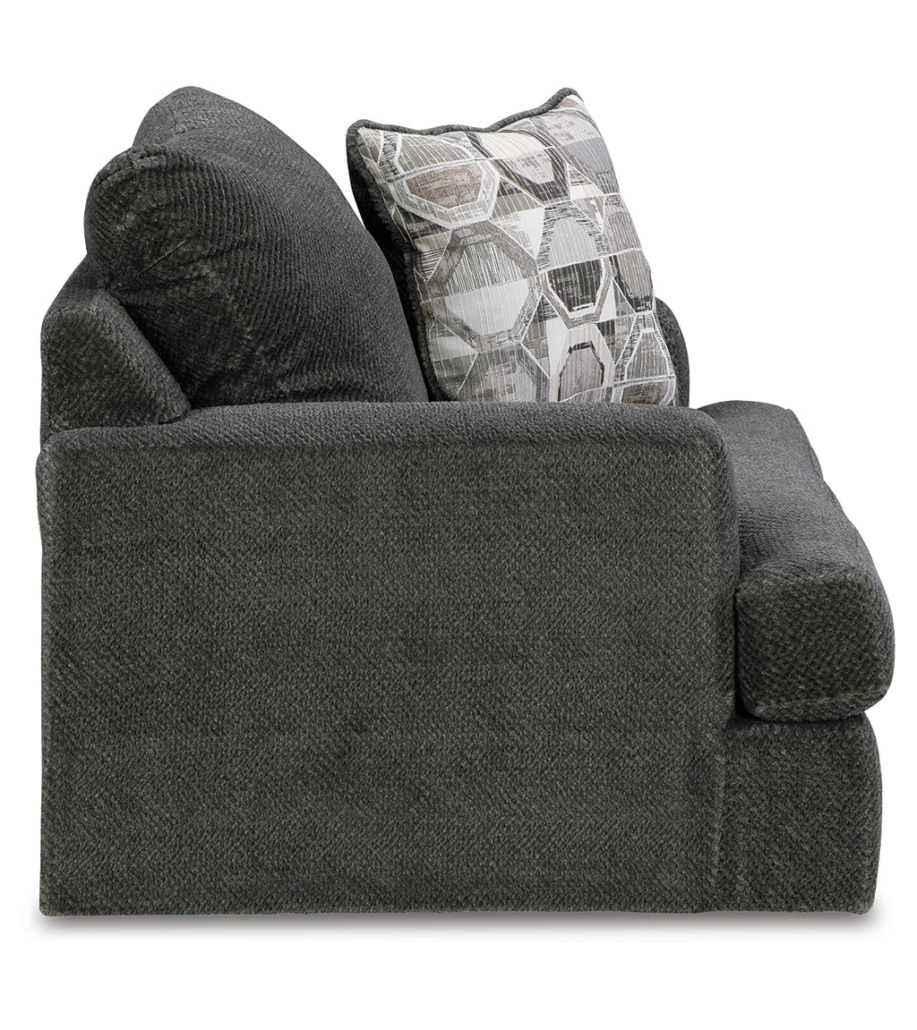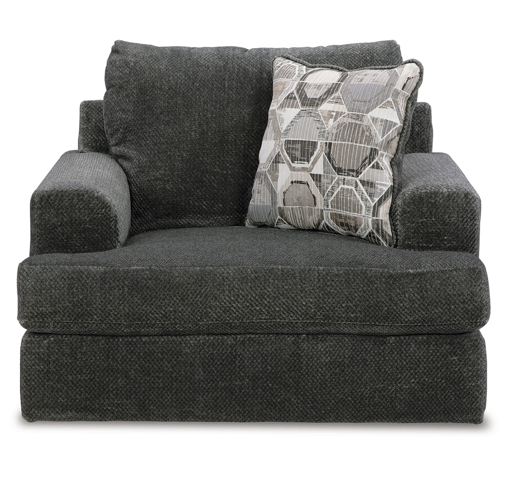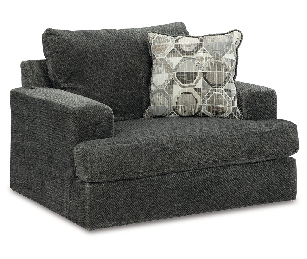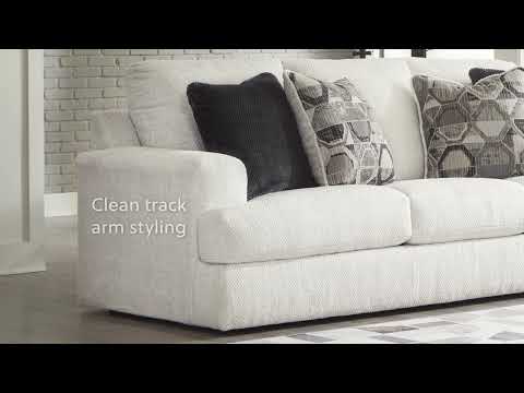 Craving casual refinement? This oversized chair has you covered. Its decidedly contemporary frame cradles sizable cushions in an ultra-soft neutral hue, lightening the mood in your living room with simple style and everyday comfort. A geometric accent pillow perfects the chic-meets-cozy vibe. | Product Features
