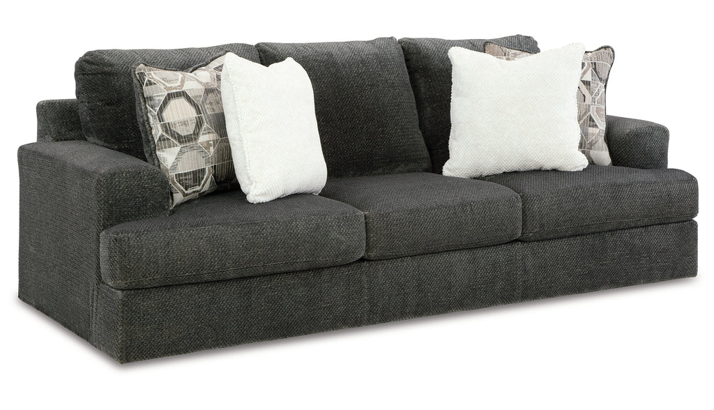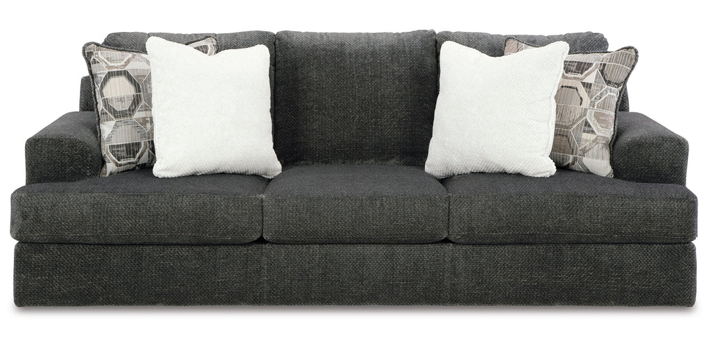 Craving casual refinement? This sofa has you covered. Its decidedly contemporary frame cradles sizable cushions in an ultra-soft neutral hue, lightening the mood in your living room with simple style and everyday comfort. Solid and geometric accent pillows perfect the chic-meets-cozy vibe. | Product Features