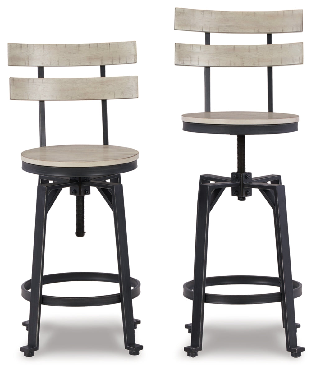 This bar stool features an acacia veneer seat and back in a whitewashed finish and a dark metal frame for a farmhouse fresh feel. The adjustable height swivel seat raises the bar on custom comfort and adds a rustic industrial element to your decor. | Product Features