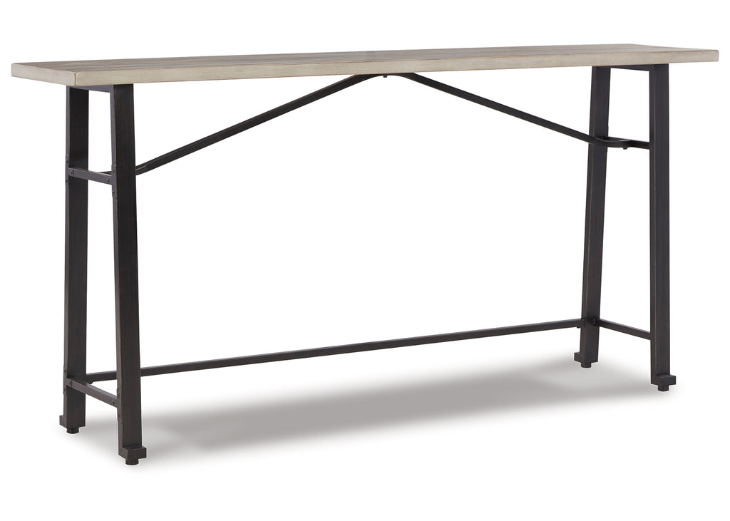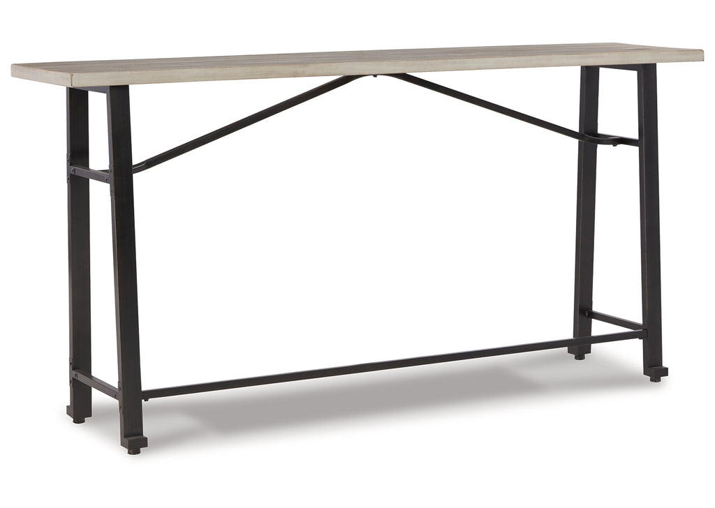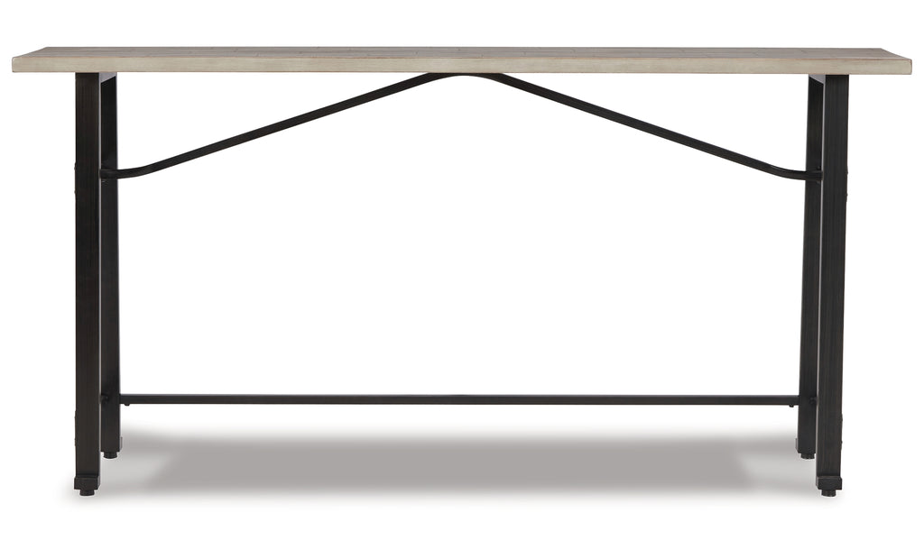 Bring that trendy bar atmosphere home with this long counter-height table. Featuring an acacia veneer tabletop in a whitewashed finish and a dark metal frame for farmhouse fresh appeal, it works well against an open wall or floated behind a sofa to make the most of your living space. Customize your comfort with adjustable height swivel stools (sold separately).