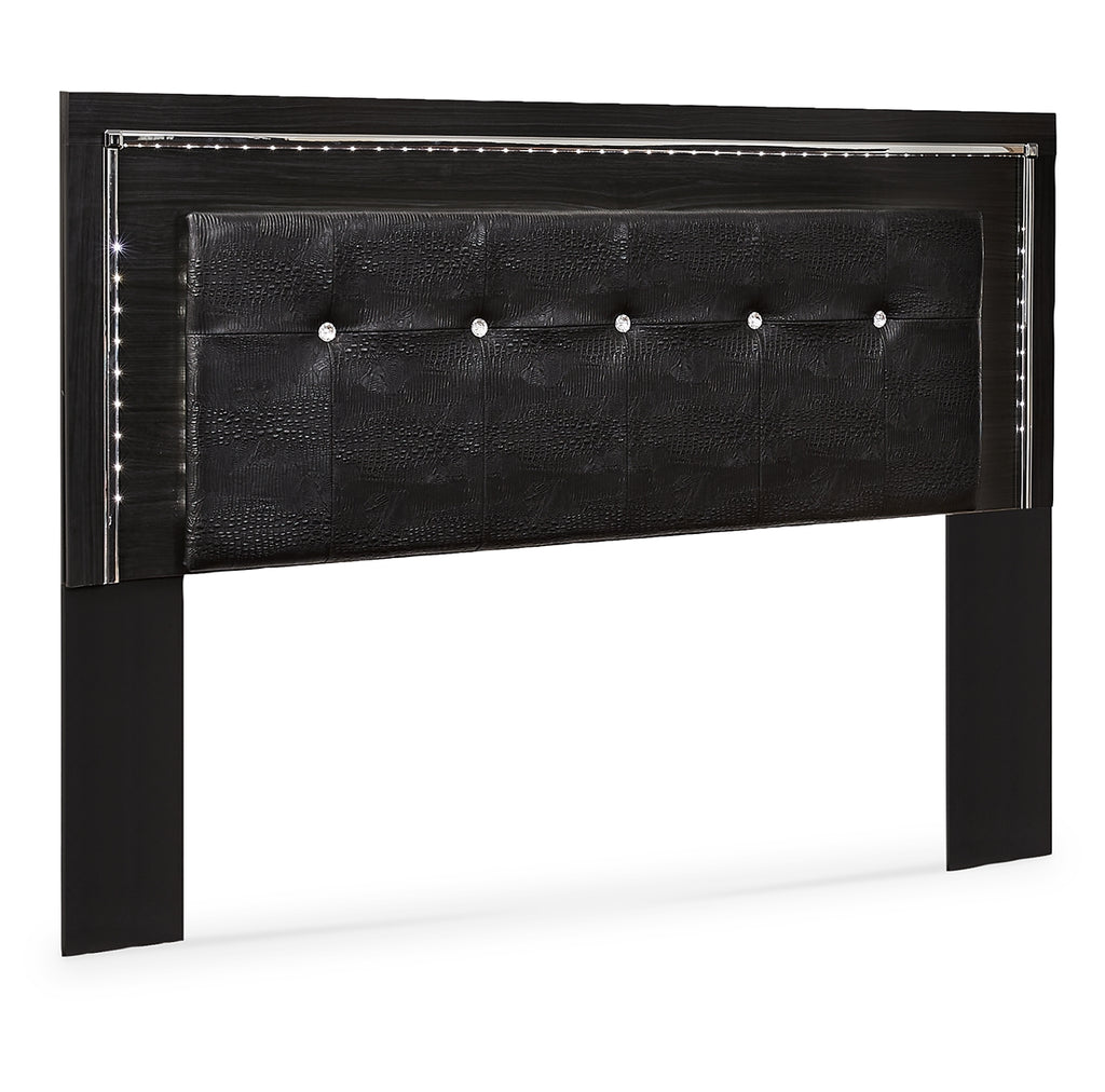 Rest easy. The luxurious look you’ve been dreaming of is yours for the taking, at a price sure to put you at ease. This upholstered headboard brings a sense of old Hollywood with a contemporary flair. A deep, dark finish, faceted chrome-tone accents and LED lighting exude Hollywood-chic style to the max. Padded windowpane stitching on the sleek, black upholstery infuses a sumptuous look that’s upscale and indulgent, and utterly on trend. A wireless remote allows you to control the color and brightness to suit the mood. | Product Features