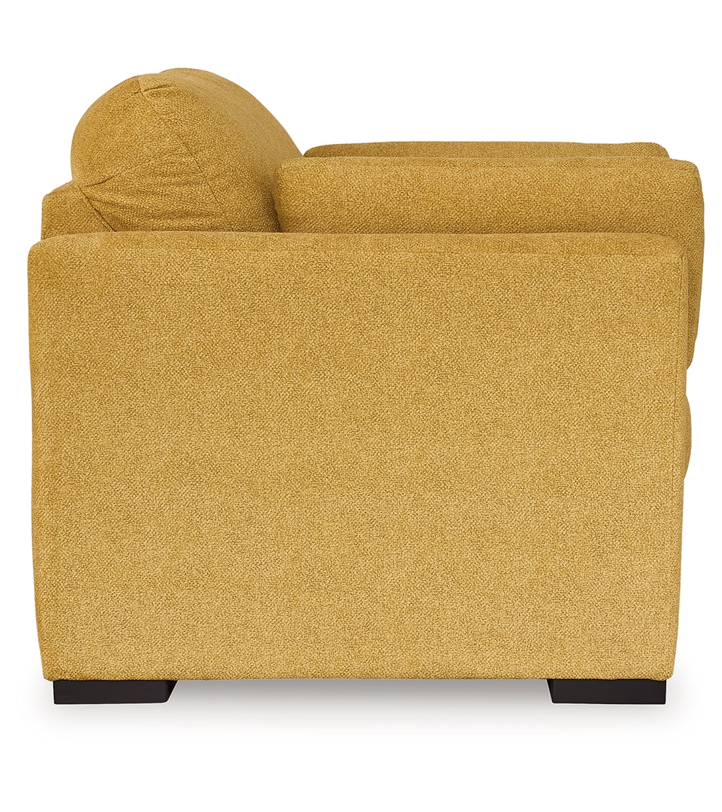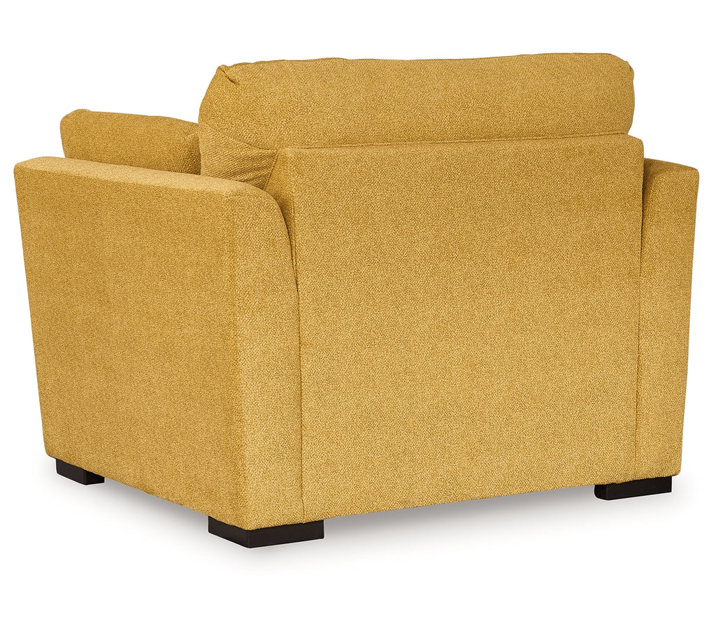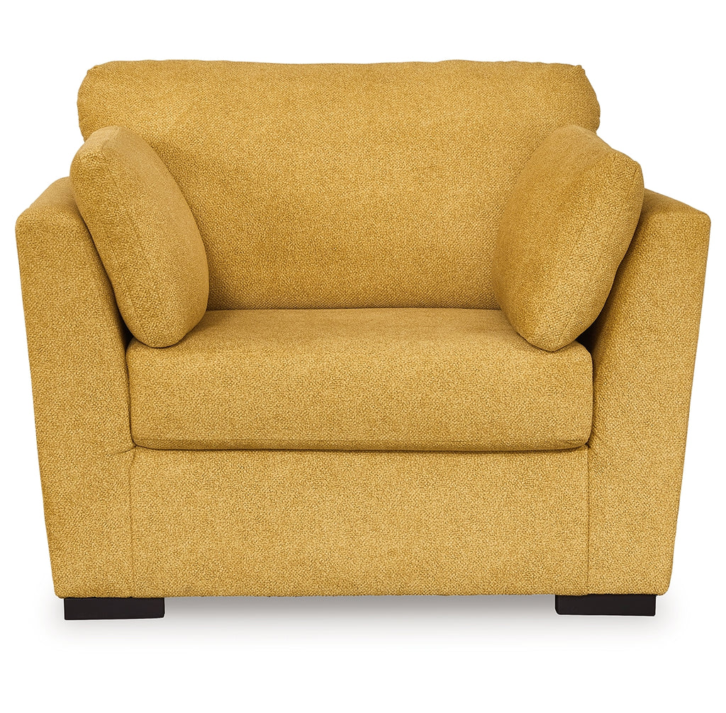 You want your home to reflect your modern, trendy eye for design. This oversized chair is here to help. Bold, bright and beautiful, it adds a fashion-forward pop of color to your living room. Velvet-like upholstery and matching bolster pillows keep comfort at top of mind, whether you're lounging around or entertaining guests. How’s that for fresh style and functionality? | Product Features