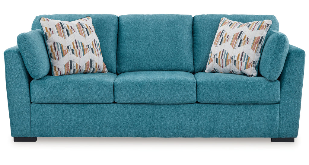 You want your home to reflect your modern, trendy eye for design. This sofa is here to help. Bold, bright and beautiful, it adds a fashion-forward pop of color to your living room. Velvet-like upholstery and matching bolster pillows keep comfort at top of mind, whether you're lounging around or entertaining guests. How’s that for fresh style and functionality? | Product Features