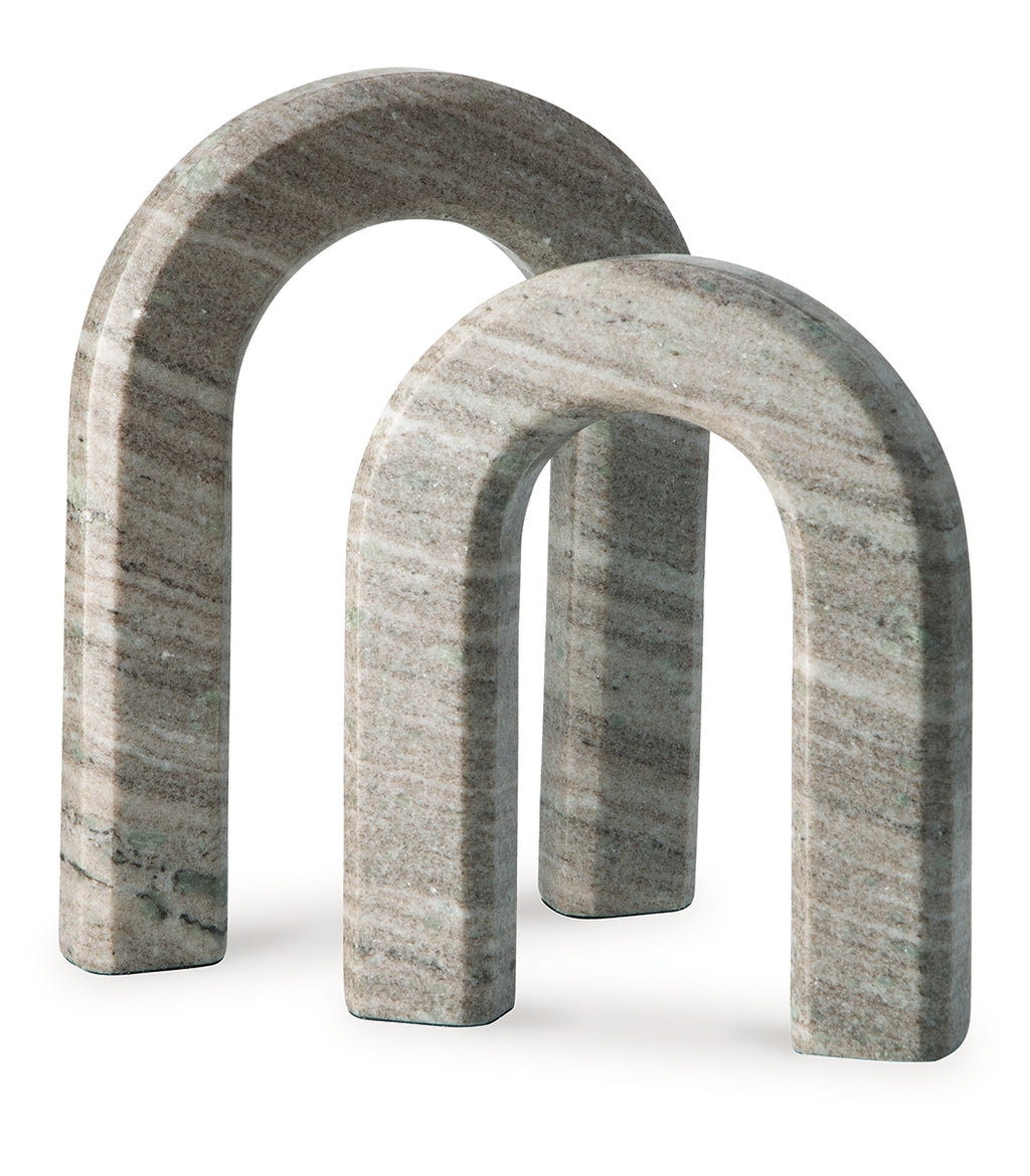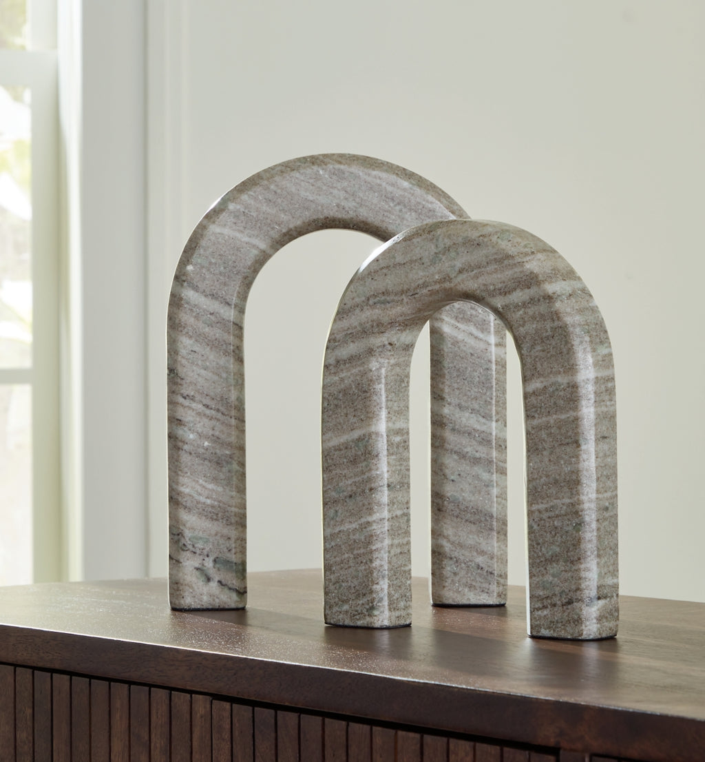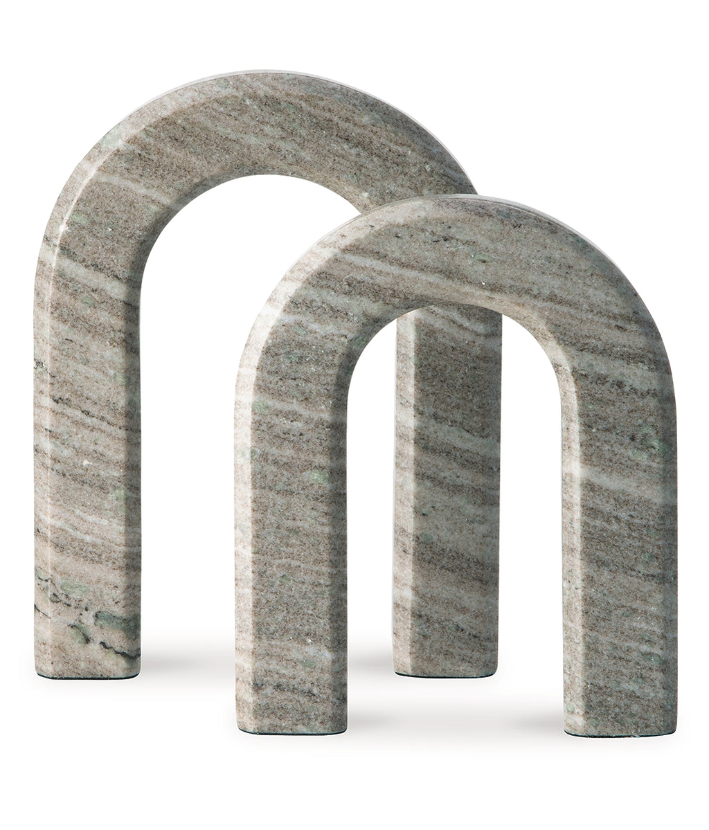 Timeless with its architectural silhouette, this sculpture set elevates your decor with the beauty of natural stone. The taupe marble construction is equally classic and contemporary. Displayed together or placed separately, these pieces maintain a refined look. | Product Features