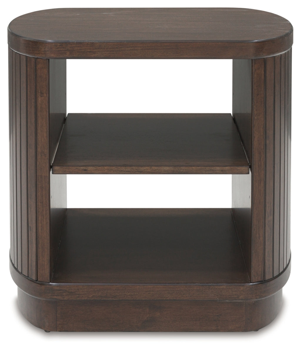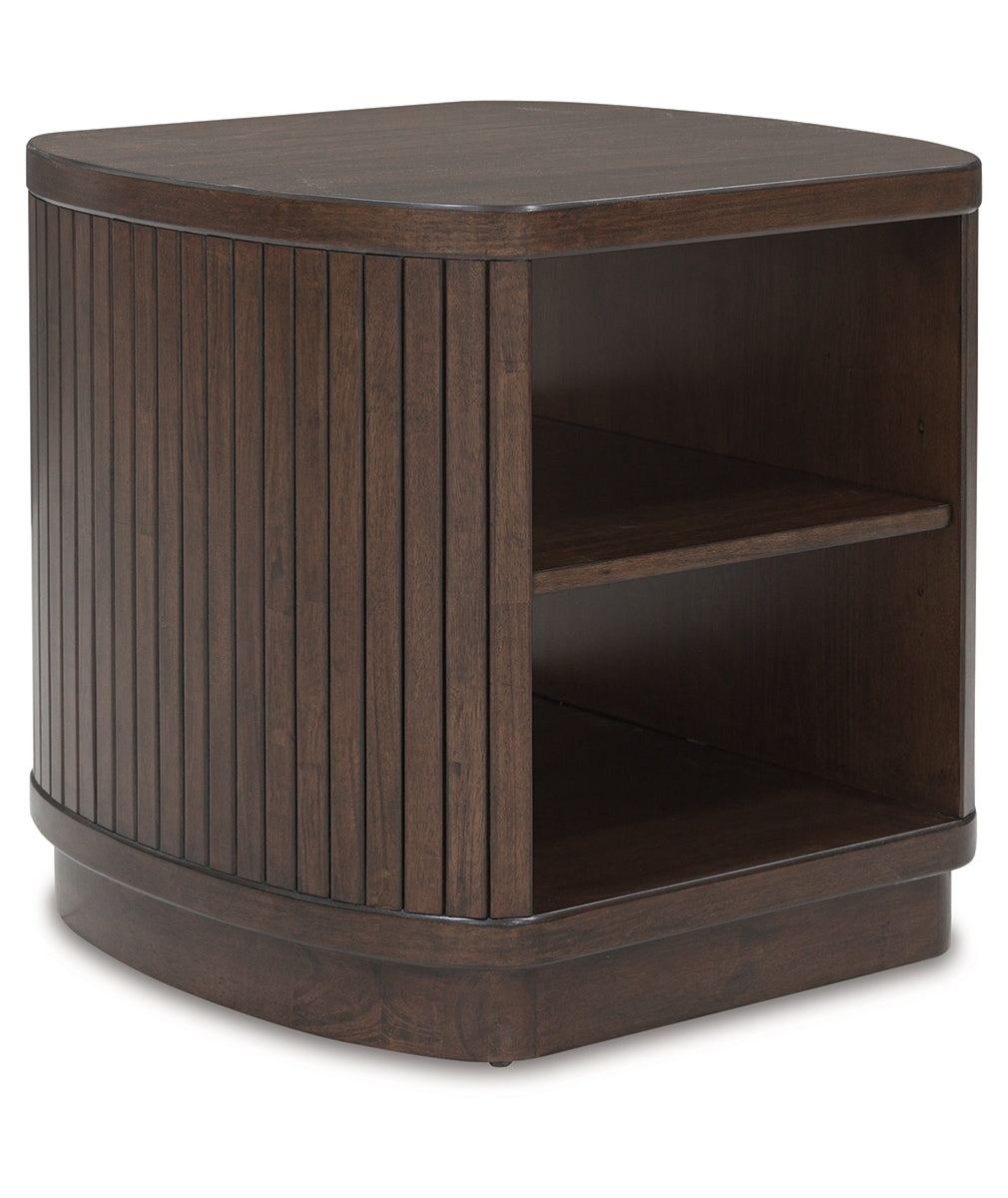 This richly finished end table makes life easy—in a casual contemporary kinda way. When you're relaxing on the couch, this piece makes reaching for the remote or a snack a breeze. A spacious lower shelf is ideal for displaying treasures. | Product Features