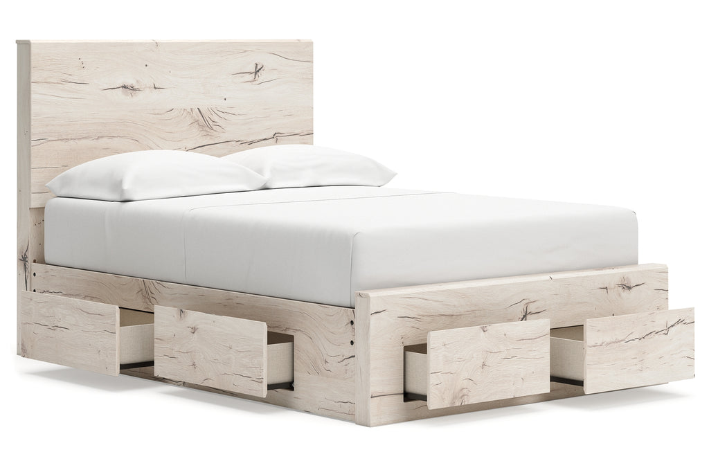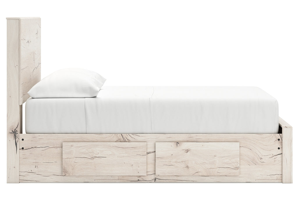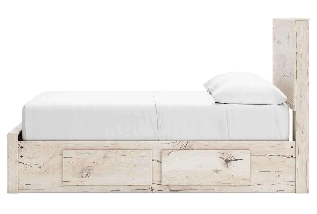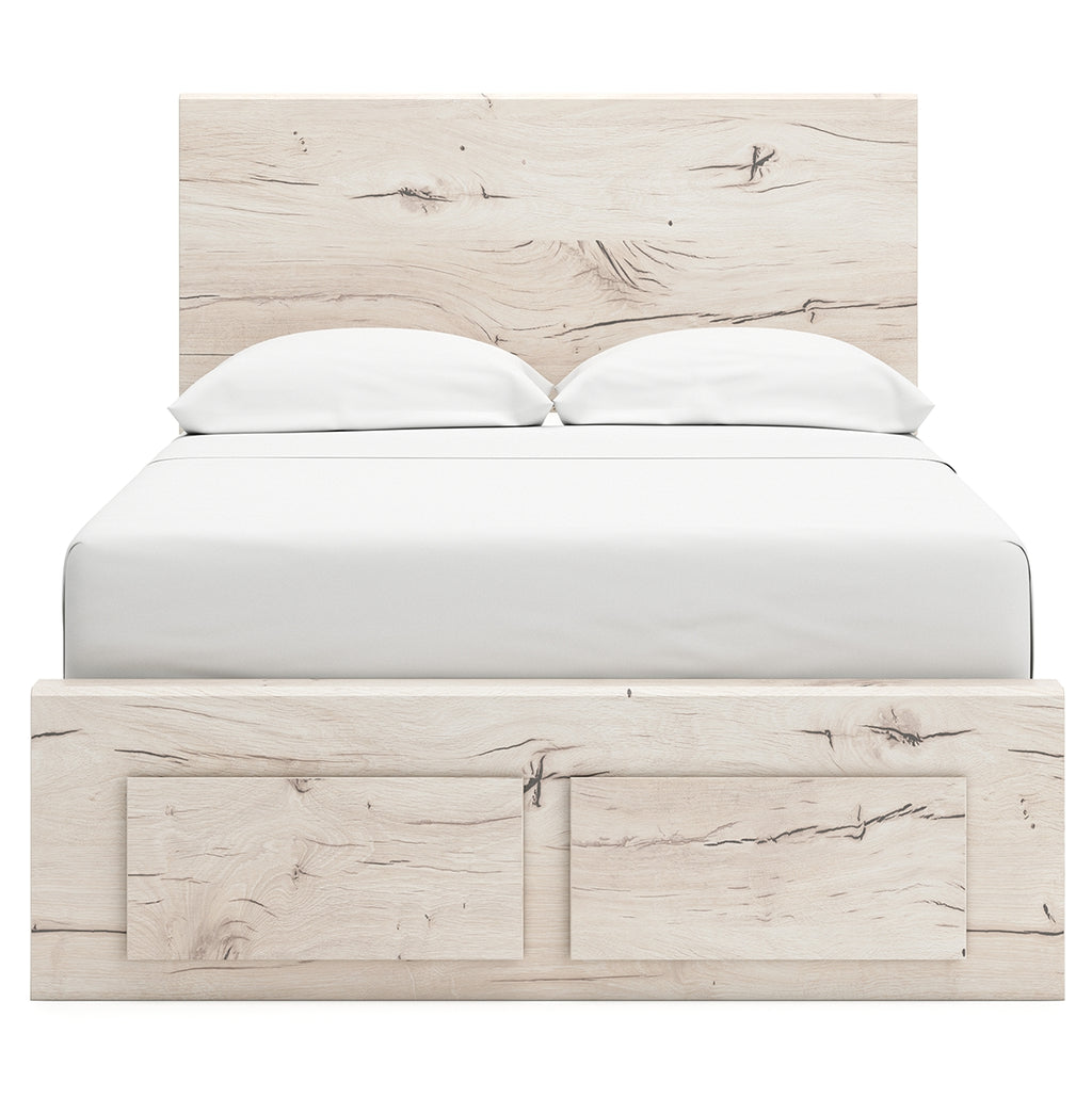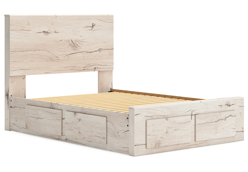 - Includes panel headboard, storage footboard, 2 under bed storage units and roll slats