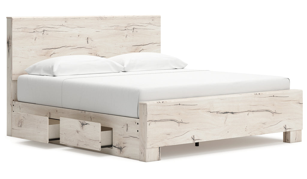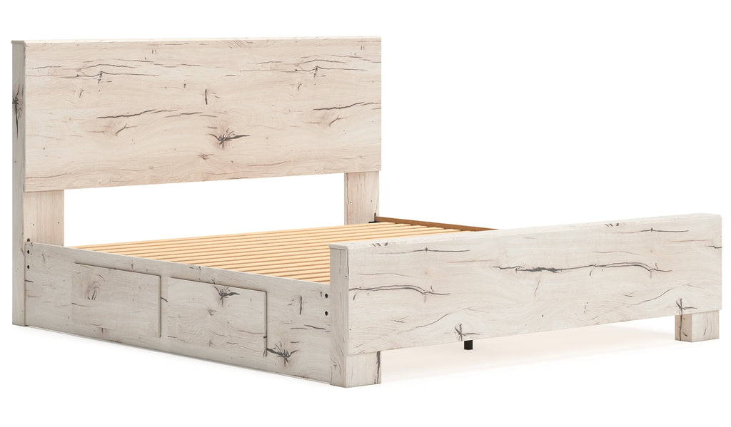 A fresh take on country living, this king panel storage bed strikes the perfect balance between farmhouse and contemporary. Its rustic white finish and replicated reclaimed oak grain merge effortlessly with the hearty, clean-lined look we love today. Two storage drawers help you keep clothes organized and put clutter in its place. You’ll love how this bed's simple design transforms your bedroom into a harmonious haven. | Product Features