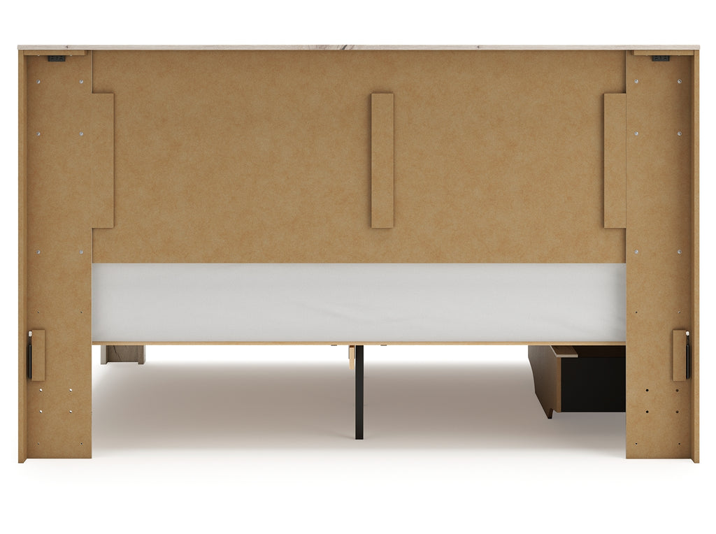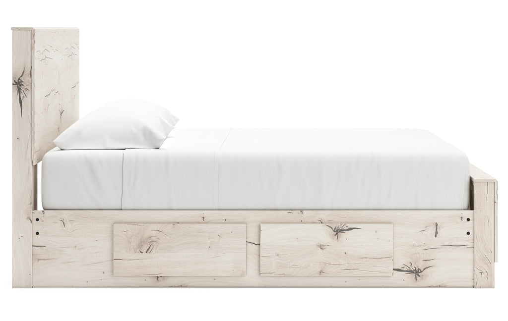 - Includes panel headboard, panel footboard, under bed storage unit, platform rails and roll slats