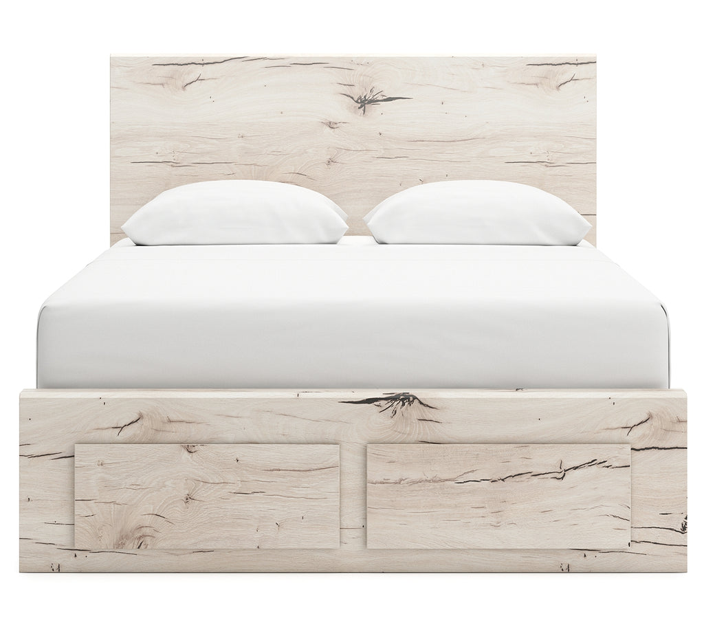 - Includes panel headboard, storage footboard, 2 under bed storage units and roll slats