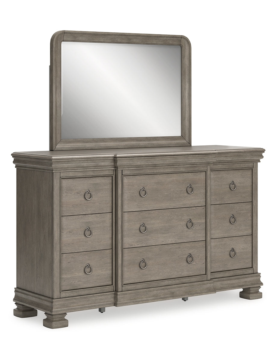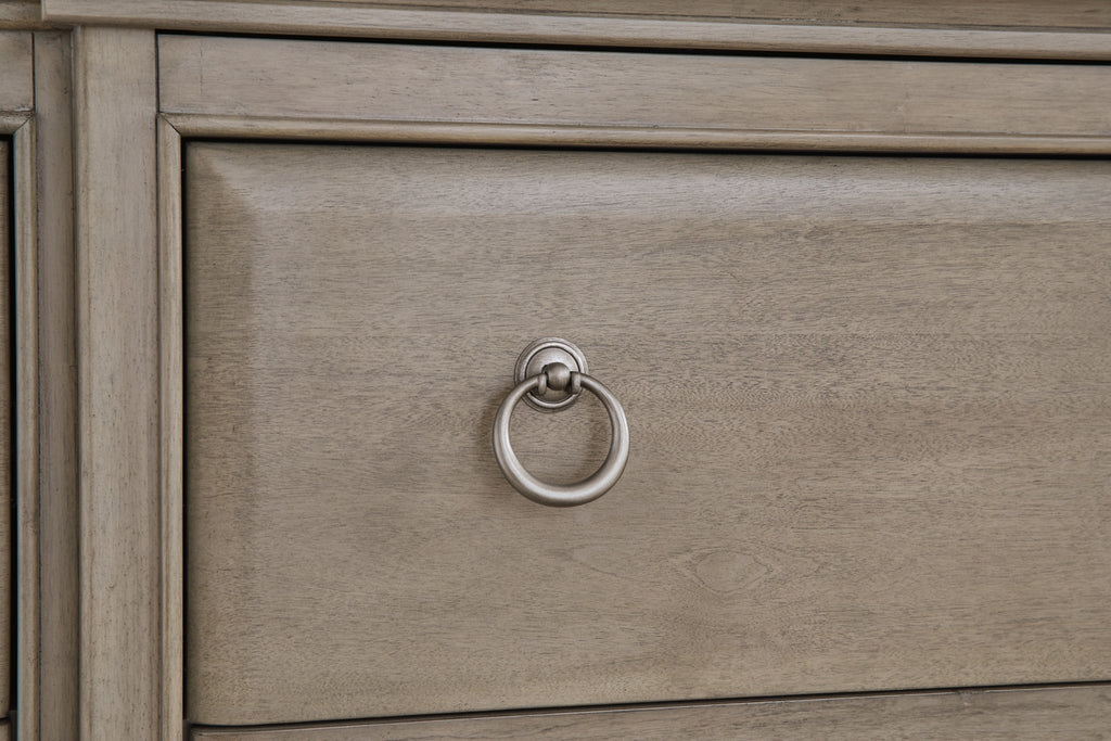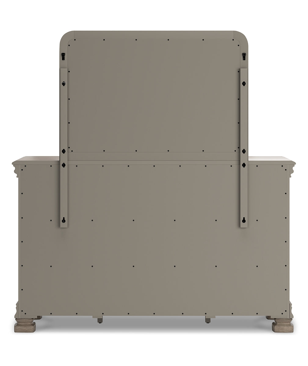 Traditional design motifs, redefined for today’s trends. Inspired by timeless Louis Philippe styling, this dresser with mirror is distinguished by its stunning attention to detail. You’ll find the light gray finish encourages an attitude of laid-back luxury. Complete with spacious storage and a jewelry drawer, it reigns over your bedroom with an air of casual elegance. | Product Features