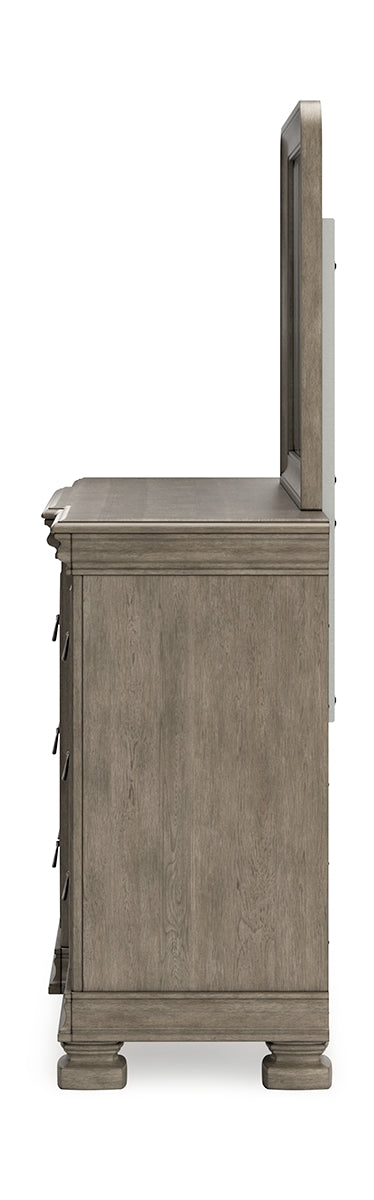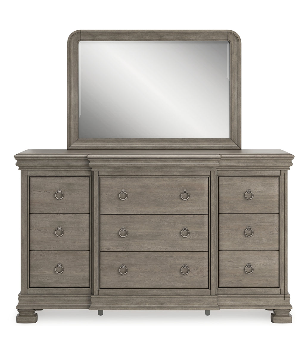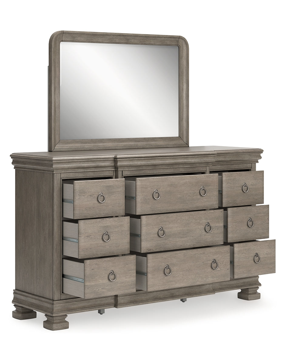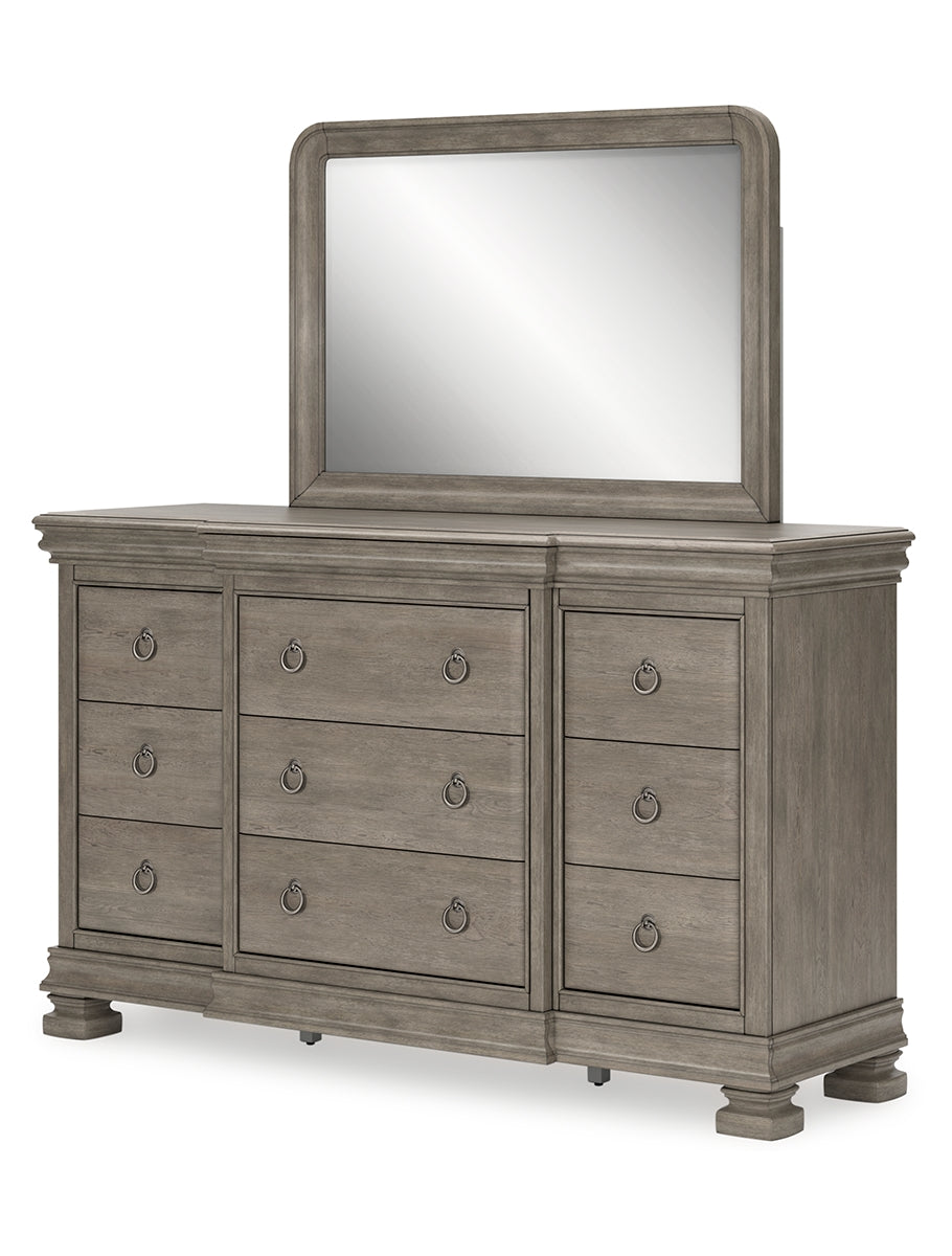 Traditional design motifs, redefined for today’s trends. Inspired by timeless Louis Philippe styling, this dresser with mirror is distinguished by its stunning attention to detail. You’ll find the light gray finish encourages an attitude of laid-back luxury. Complete with spacious storage and a jewelry drawer, it reigns over your bedroom with an air of casual elegance. | Product Features