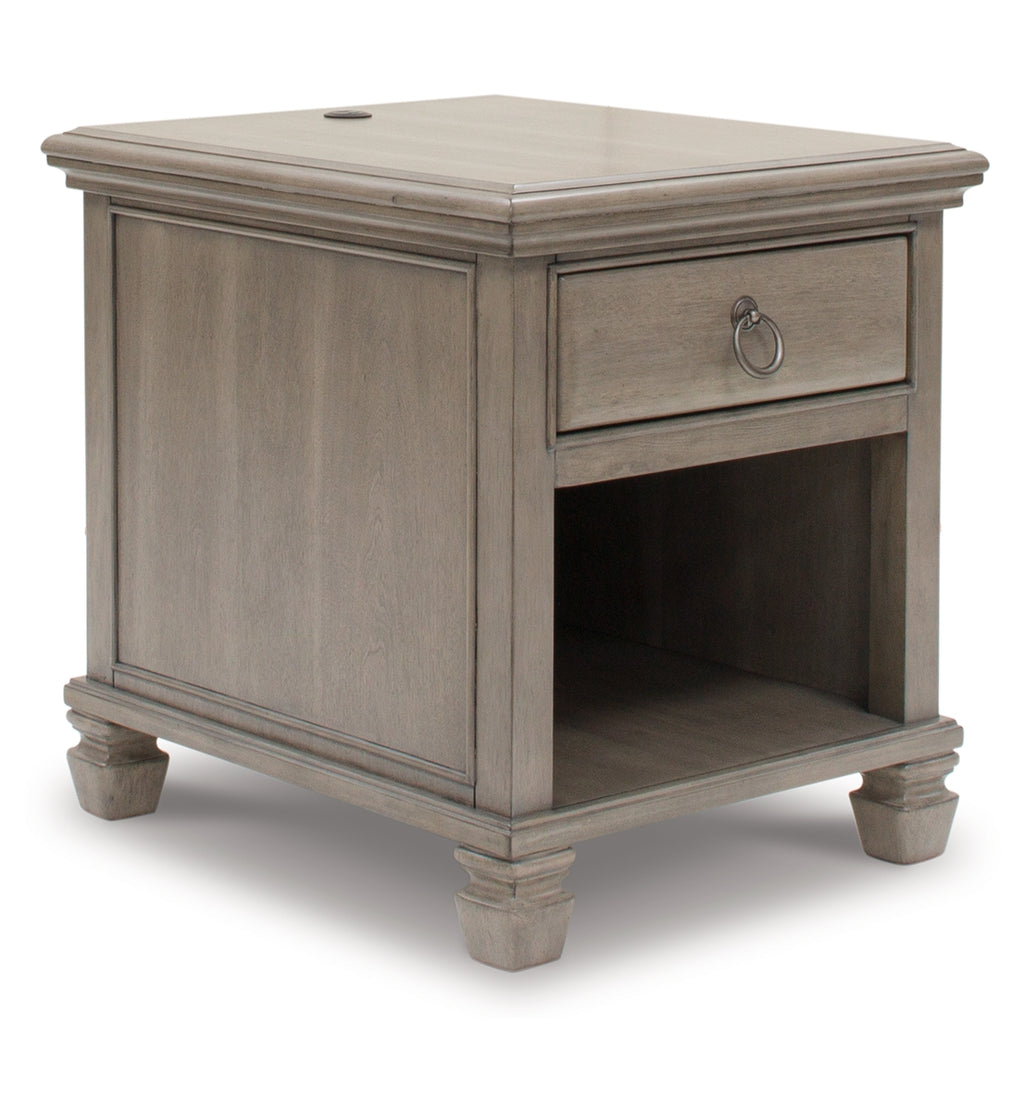 Traditional design motifs, redefined for the trends of today. This end table utterly impresses with its overall transitional take on style. You’ll find that the light gray finish encourages an attitude of laid-back luxury. Complete with USB charging, this table reigns over your living room with an air of casual elegance. | Product Features