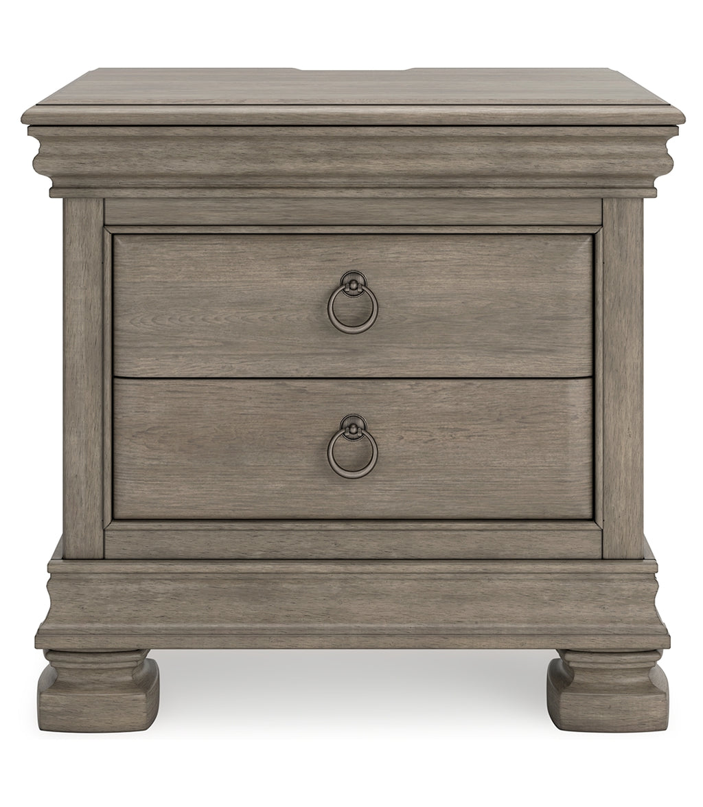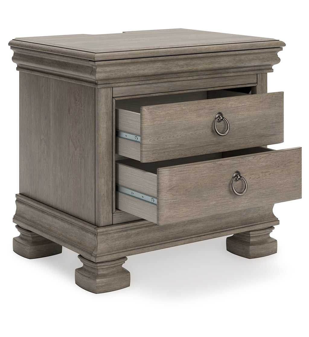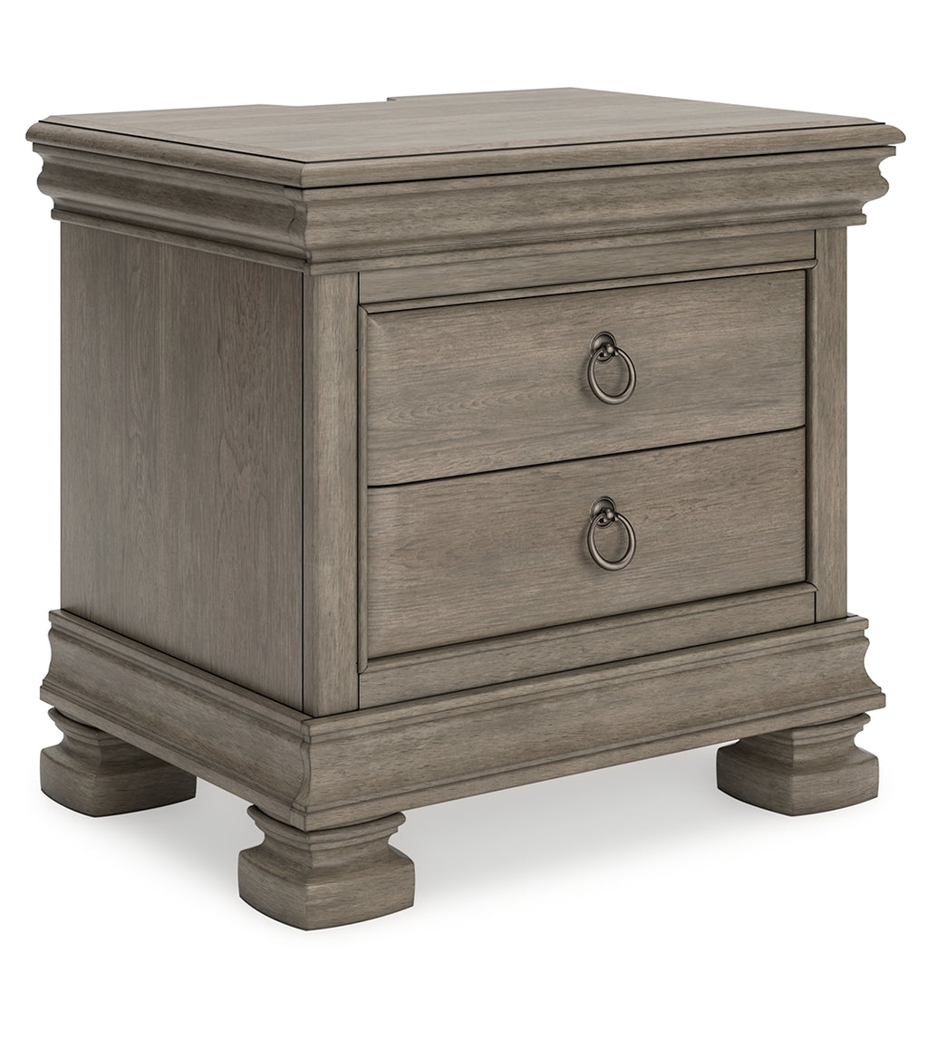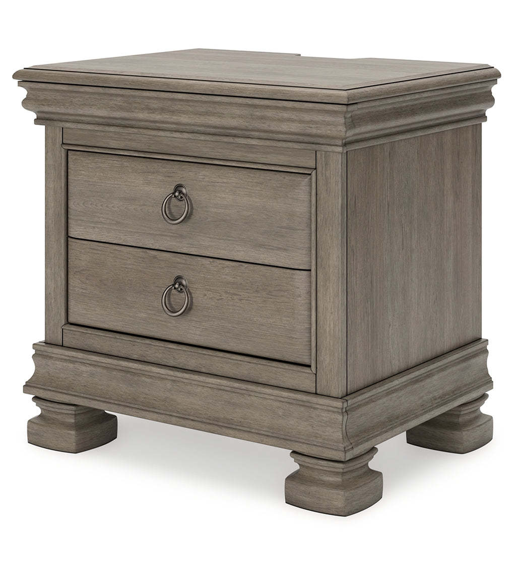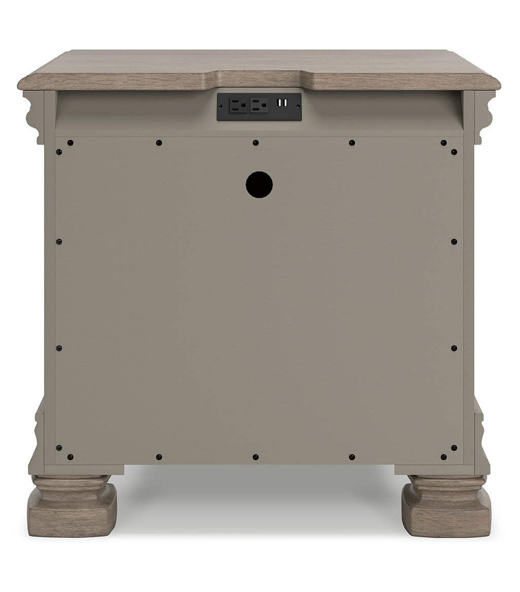 Traditional design motifs, redefined for today’s trends. Inspired by timeless Louis Philippe styling, this nightstand is distinguished by its stunning attention to detail. You’ll find the light gray finish encourages an attitude of laid-back luxury. Complete with a power outlet and USB charging, it reigns over your bedroom with an air of casual elegance. | Product Features