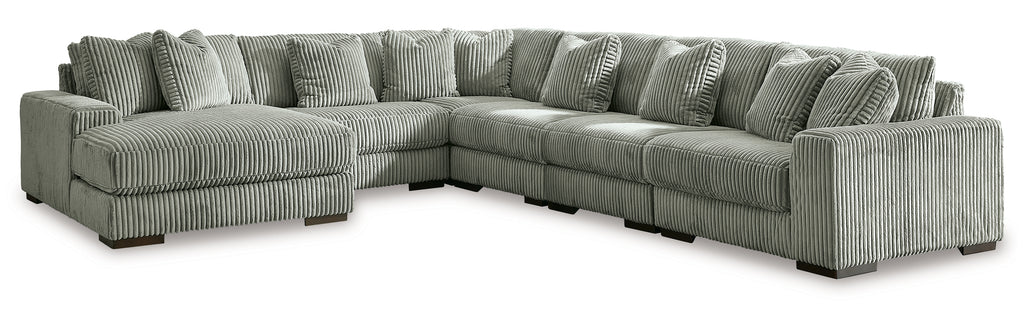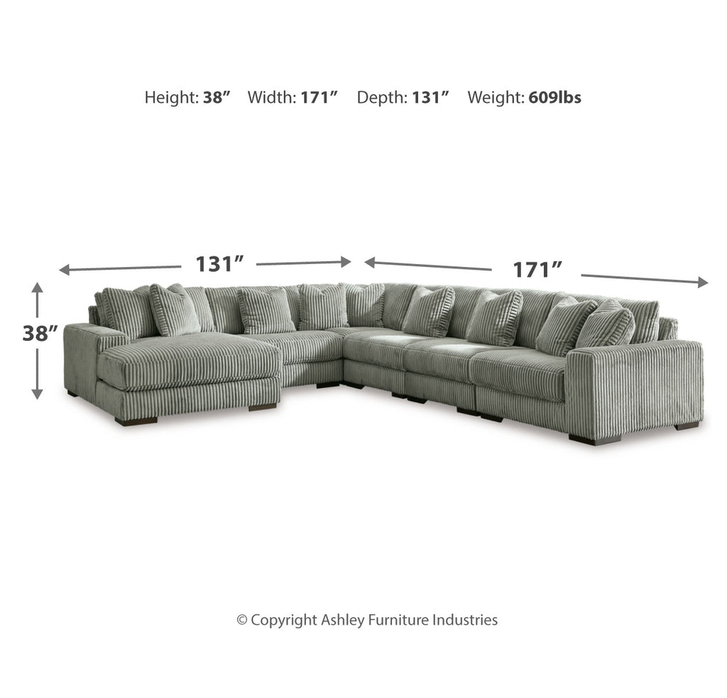 6-Piece Sectional with Chaise- Includes 6 pieces: left-arm facing corner chaise, wedge, 3 armless chairs and right-arm facing corner chair