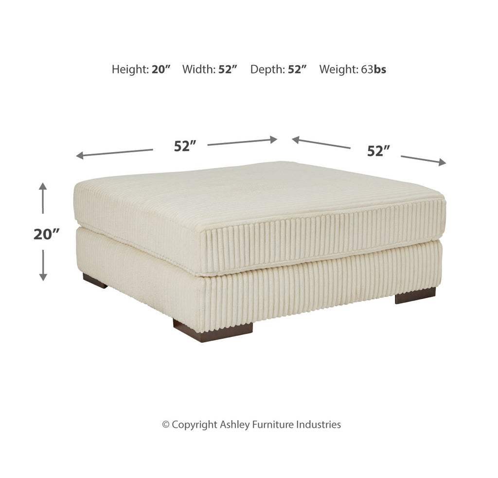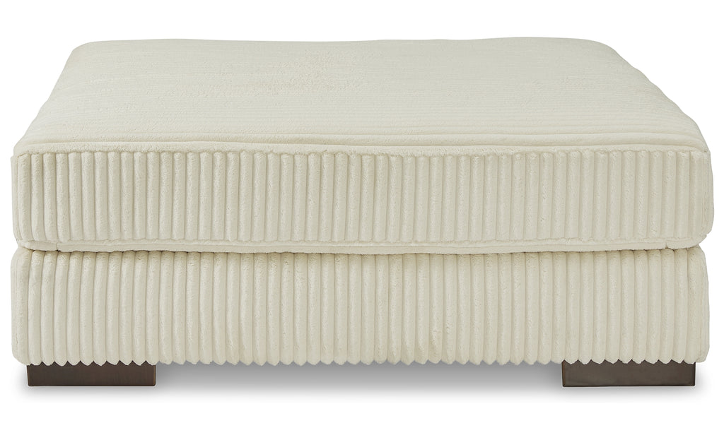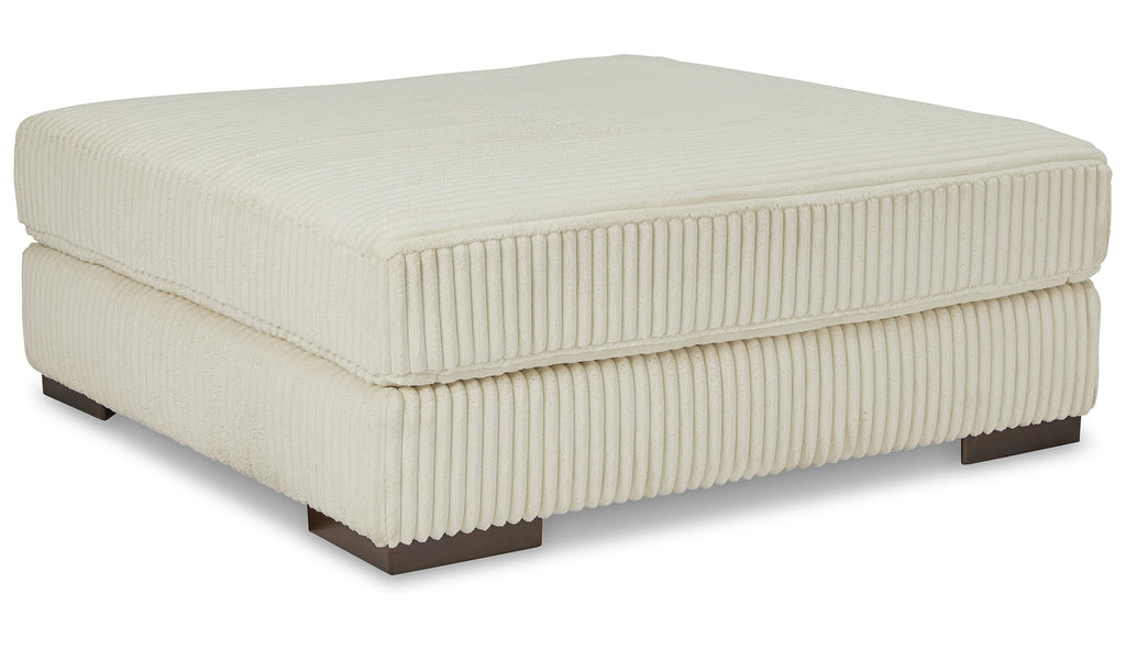 Plush and posh. Showcase your eye for on-trend texture with the statement-making cord upholstery of this oversized accent ottoman. Its stunningly soft fabric entices in an ivory hue, complementing contemporary color palettes. Let your feet sink into the spacious cushion and plan to stay a while—this cozy living room ottoman highlights your high-end approach to comfort and style. | Product Features