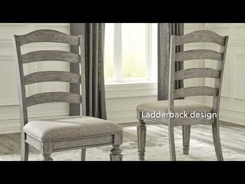 We love how the classic farmhouse ladderback chair gets a fresh makeover in this dining room chair. Understated yet rich with character, the antiqued gray finish allows the wood’s natural grain to shine through. Crisp, clean and neutral, the cushioned seat upholstery is a subtle complement. | Product Features