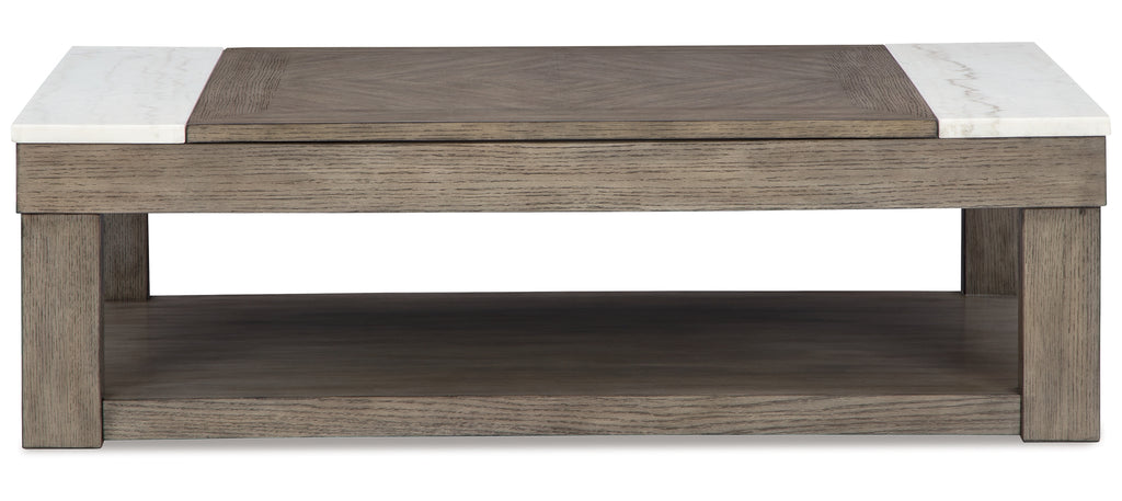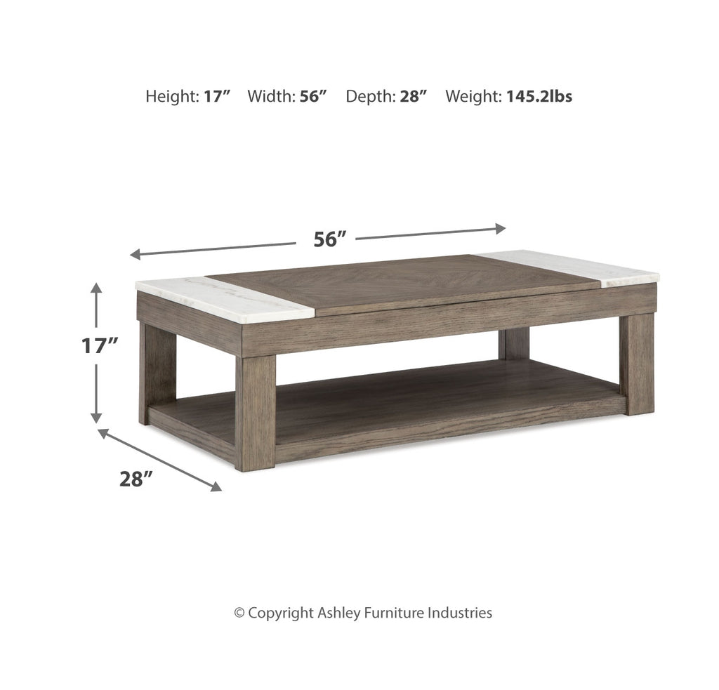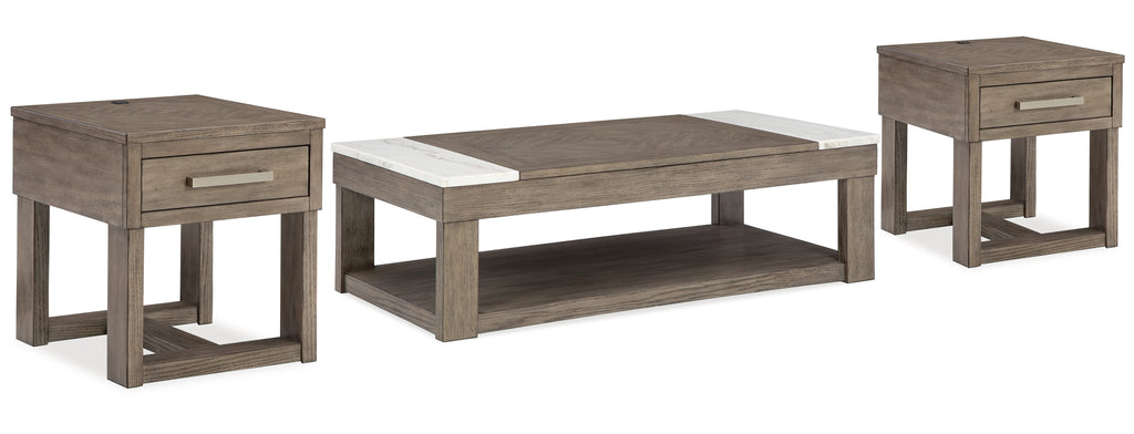 Welcome casual, contemporary style and functionality to your home. This occasional table package, with natural white marble accents, delivers a mixed-material vibe. Finished in a grayish brown wood tone, the set lends a laid-back look that’s so welcome at the end of a long day. | Product Features