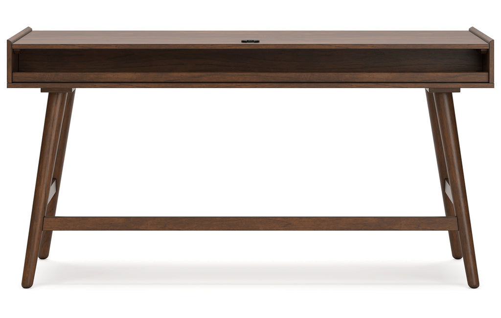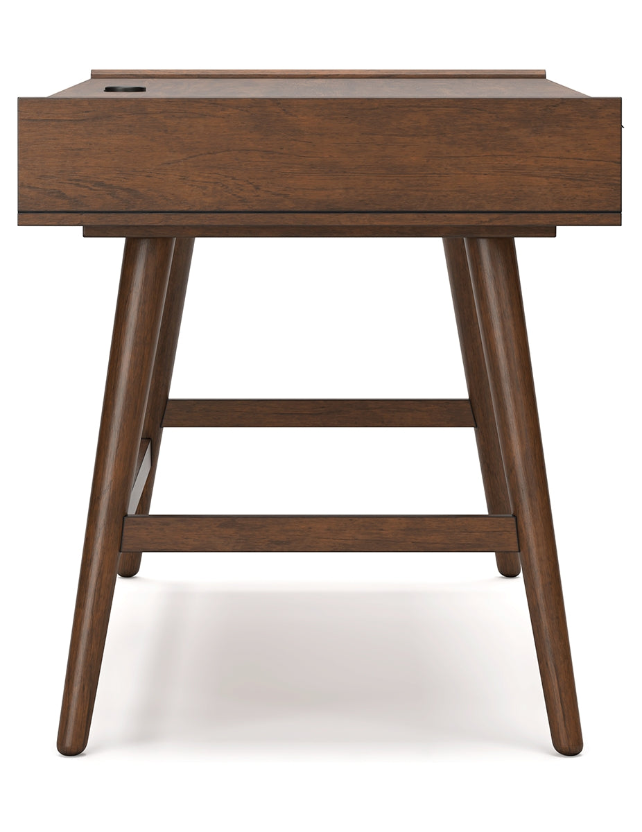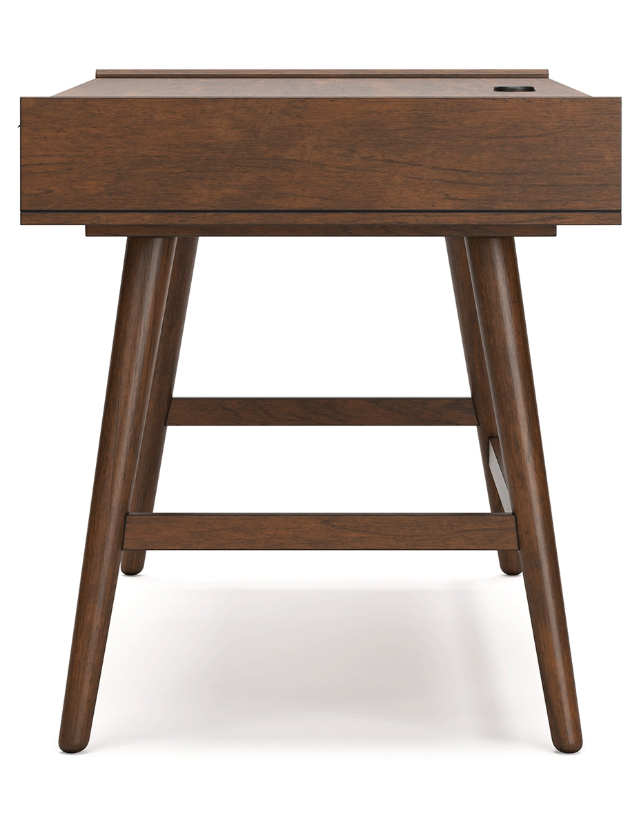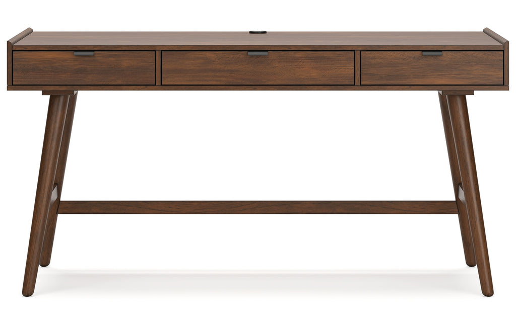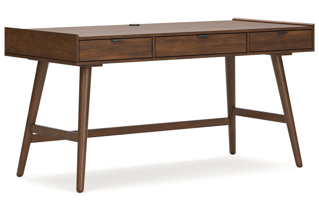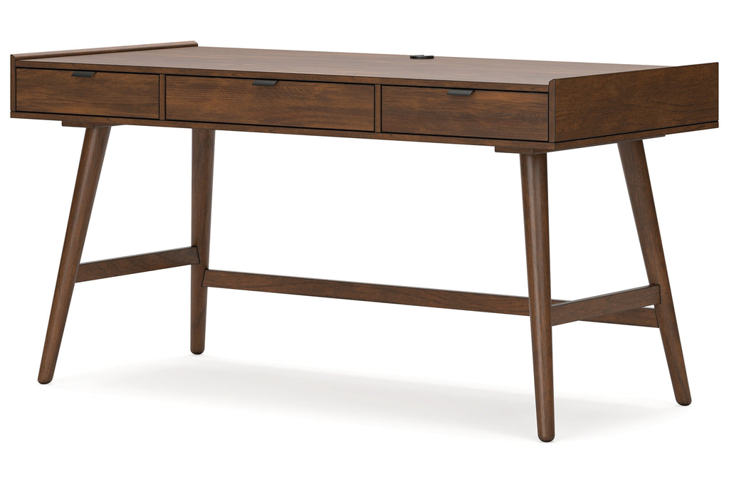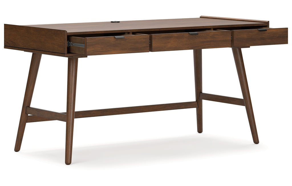 A refreshed take on retro aesthetics. This home office desk adds an air of playful simplicity to your workspace, capturing the architectural language of mid-century stylings. Subtle in design, it invites the eye with a sleek, open frame. A casual, yet timeless, finish and three storage drawers complete this study in form and function. | Product Features