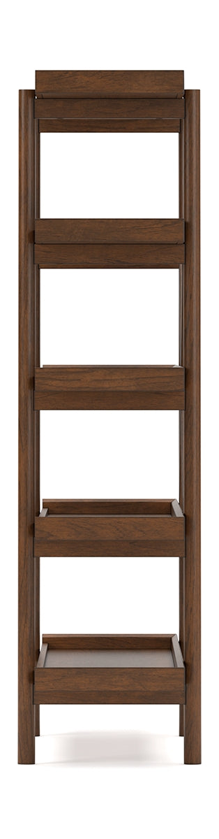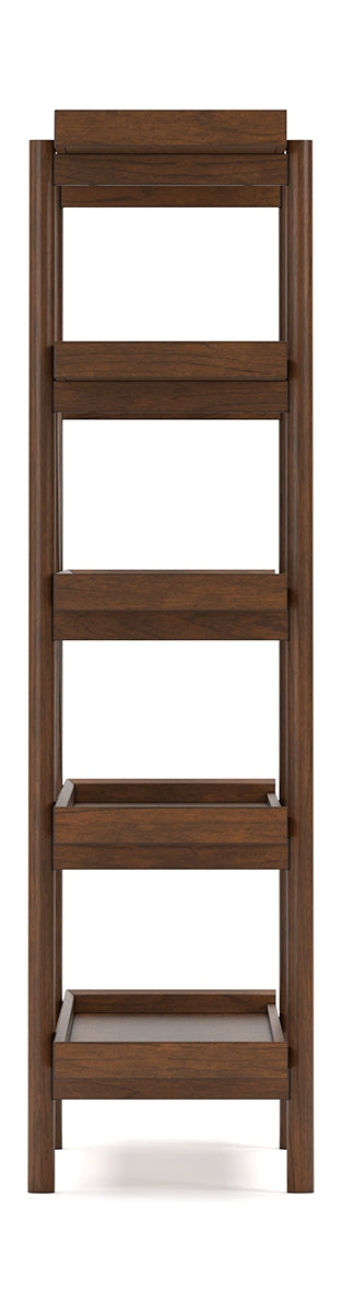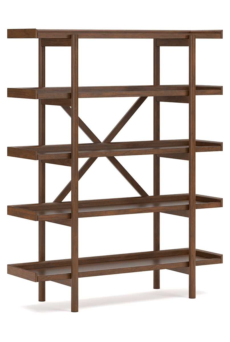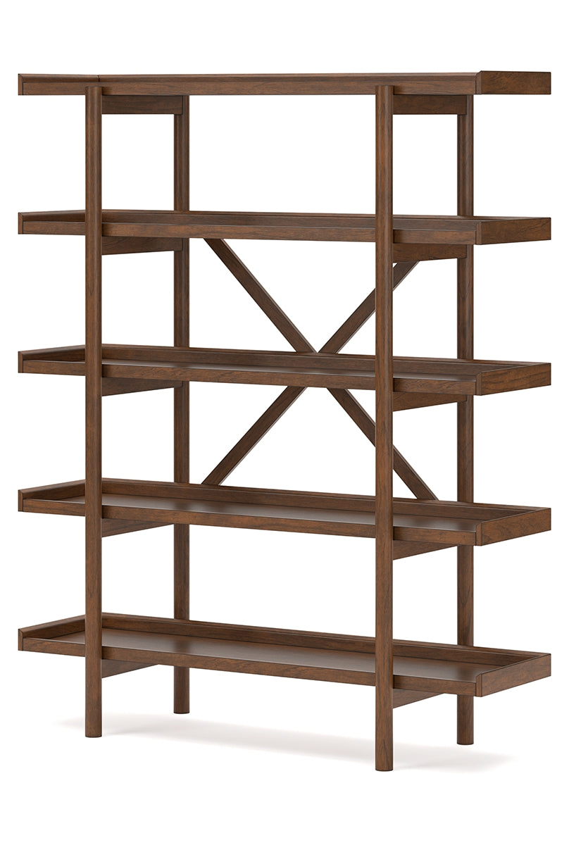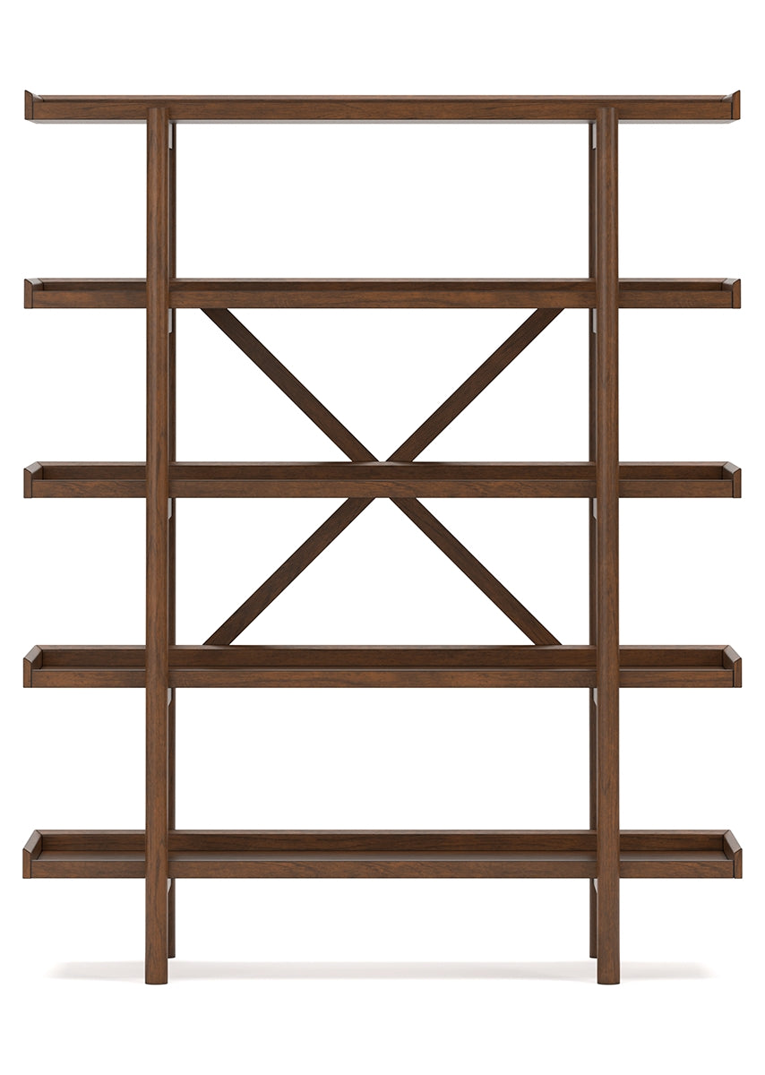 A refreshed take on retro aesthetics. This bookcase adds an air of playful simplicity to your home, capturing the architectural language of mid-century stylings. Subtle in design, it invites the eye with a sleek, open frame. A casual, yet timeless, finish and five gallery shelves stack up for great form and function. | Product Features