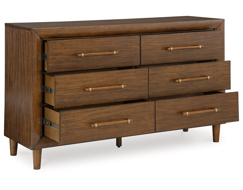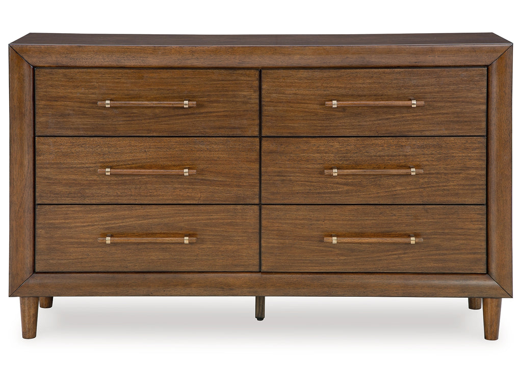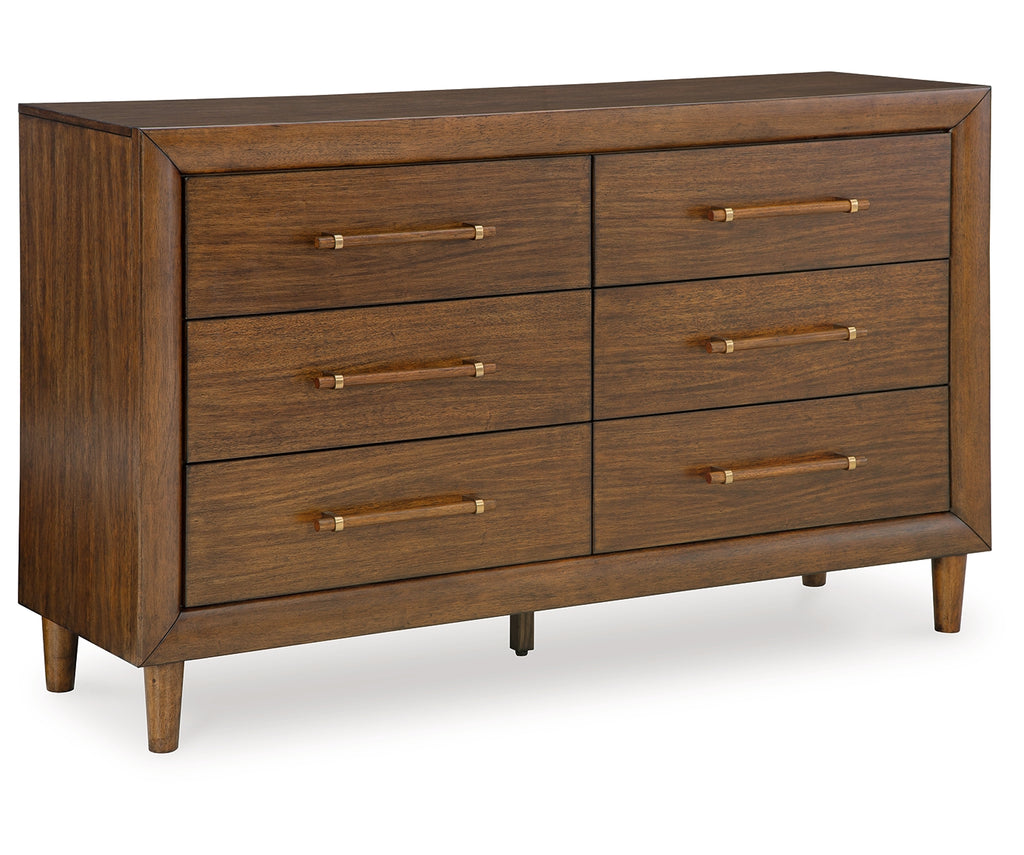 This dresser is perfect for contemporary or mid-century interiors. Its wood-tone finish is versatile and timeless. The drawers, designed with exquisite framing and elongated wooden pulls, enhance the overall aesthetic. Whether you want to refresh your entire bedroom or add a few key pieces, this is the ideal choice. | Product Features