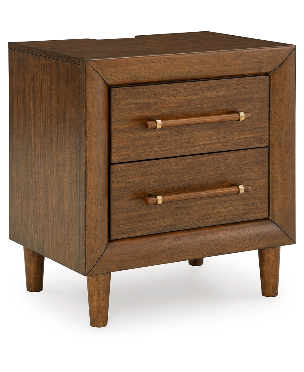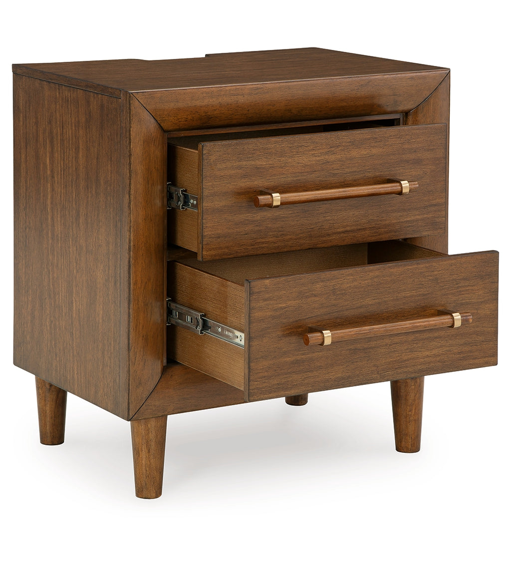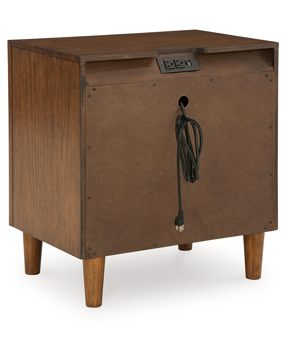 This nightstand is perfect for contemporary or mid-century interiors. Its wood-tone finish is versatile and timeless. Drawers with exquisite framing and elongated wooden pulls enhance the overall aesthetic, while USB charging keeps you connected. Whether you want to refresh your entire bedroom or add a few key pieces, this is the ideal choice. | Product Features