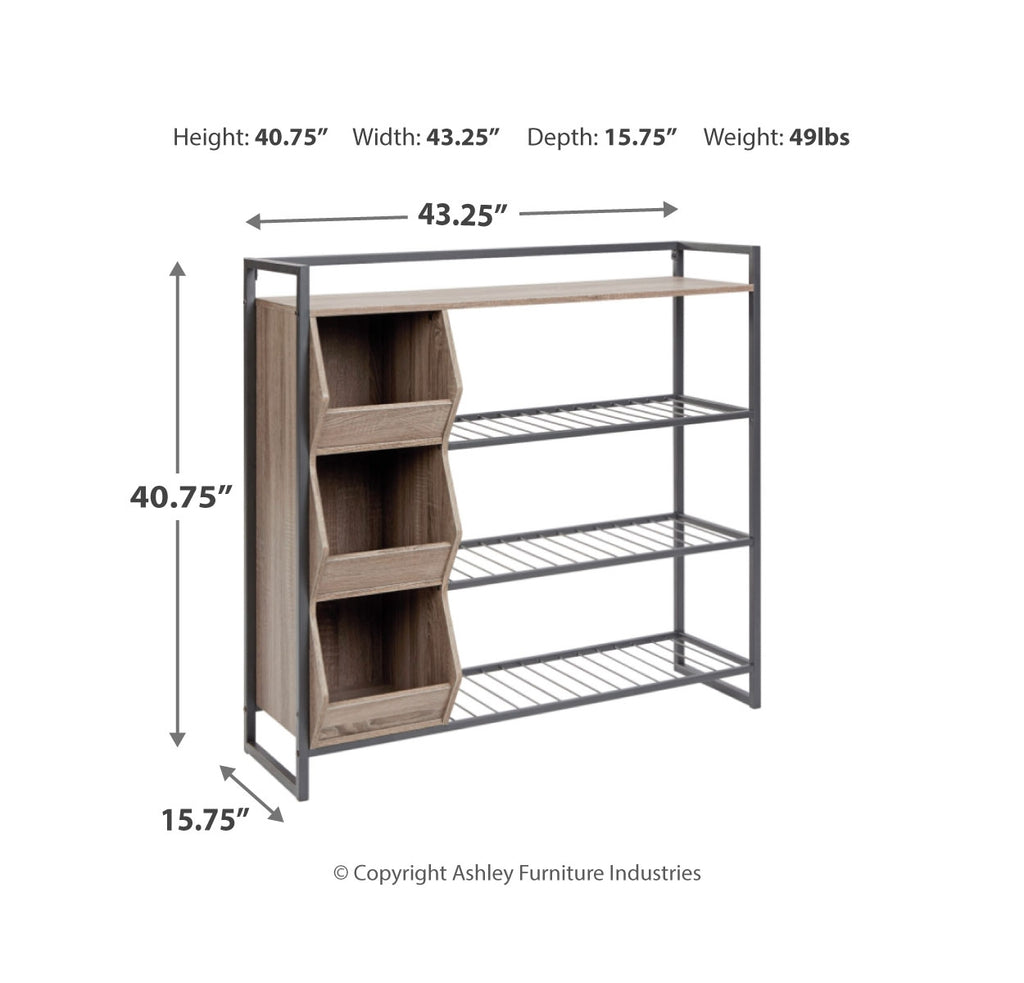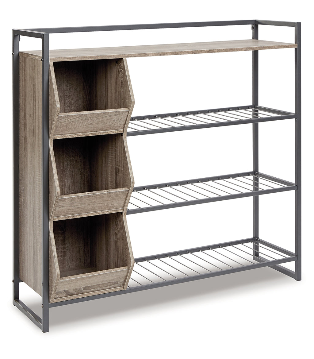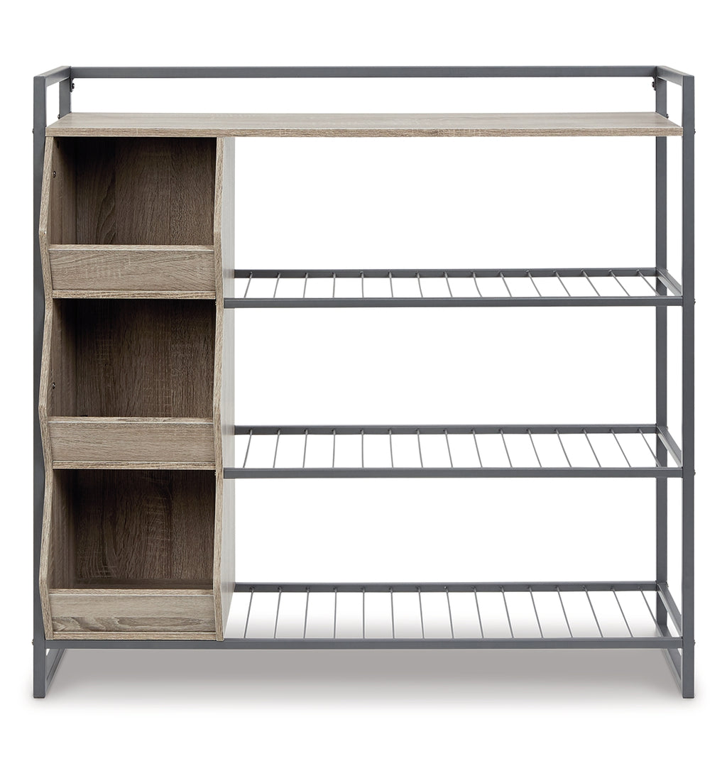 Whether out of sight in a closet or sitting pretty in an entryway, this two-tone shoe rack will keep your fabulous footwear organized and on point. If you’re looking for a stylish approach to storage, this versatile rack is ready to tackle everything from towels to toys with modern farmhouse flair. | Product Features