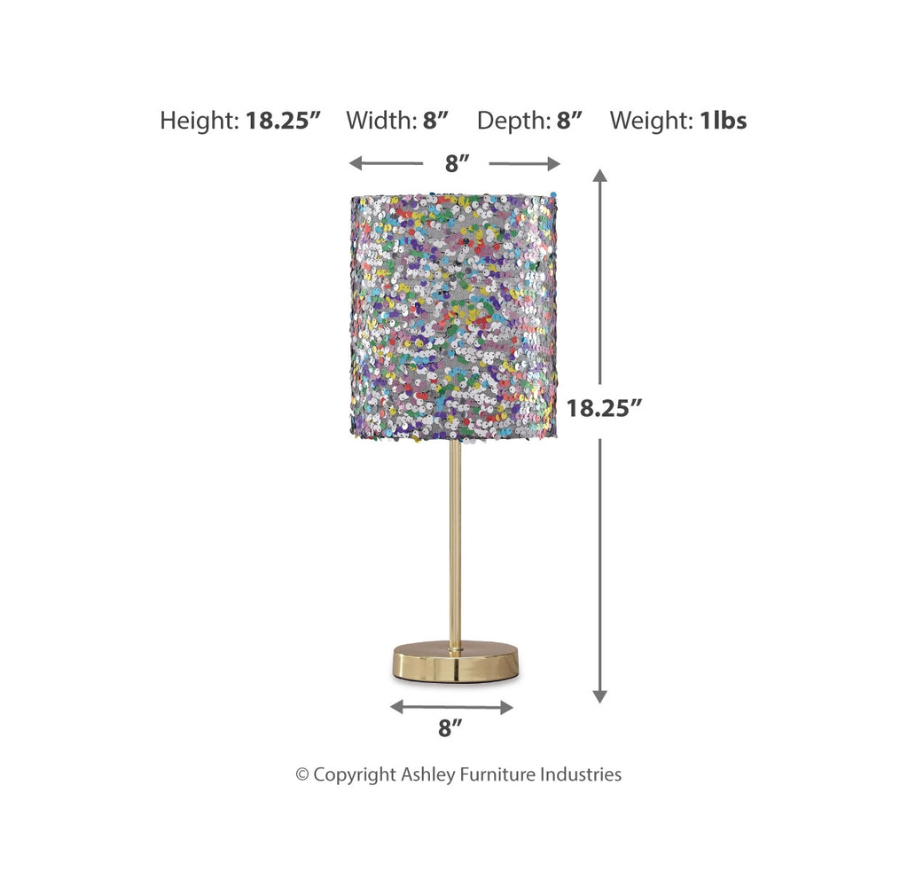 Is your little one all about the glam factor? If so, she’ll love this table lamp. Multicolored sequined drum shade lights up her room in style. Goldtone metal base is a classy touch to this glitzy design. | Product Features