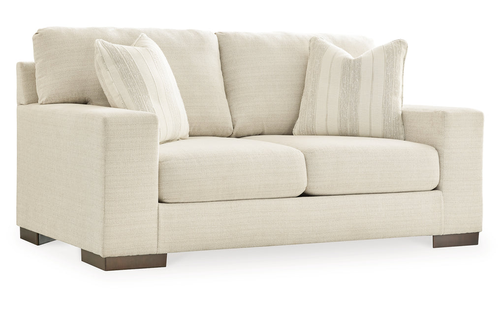 Classic comfort gets a mod twist with this loveseat. Its minimalistic approach and structured silhouette bring a clean-lined design element to your living room. Sink into the positively plush cushions while relaxing solo, or curl up with a glass of wine while hosting guests. And with light neutral upholstery that suits both casual and contemporary spaces, this loveseat offers endless style possibilities. | Product Features