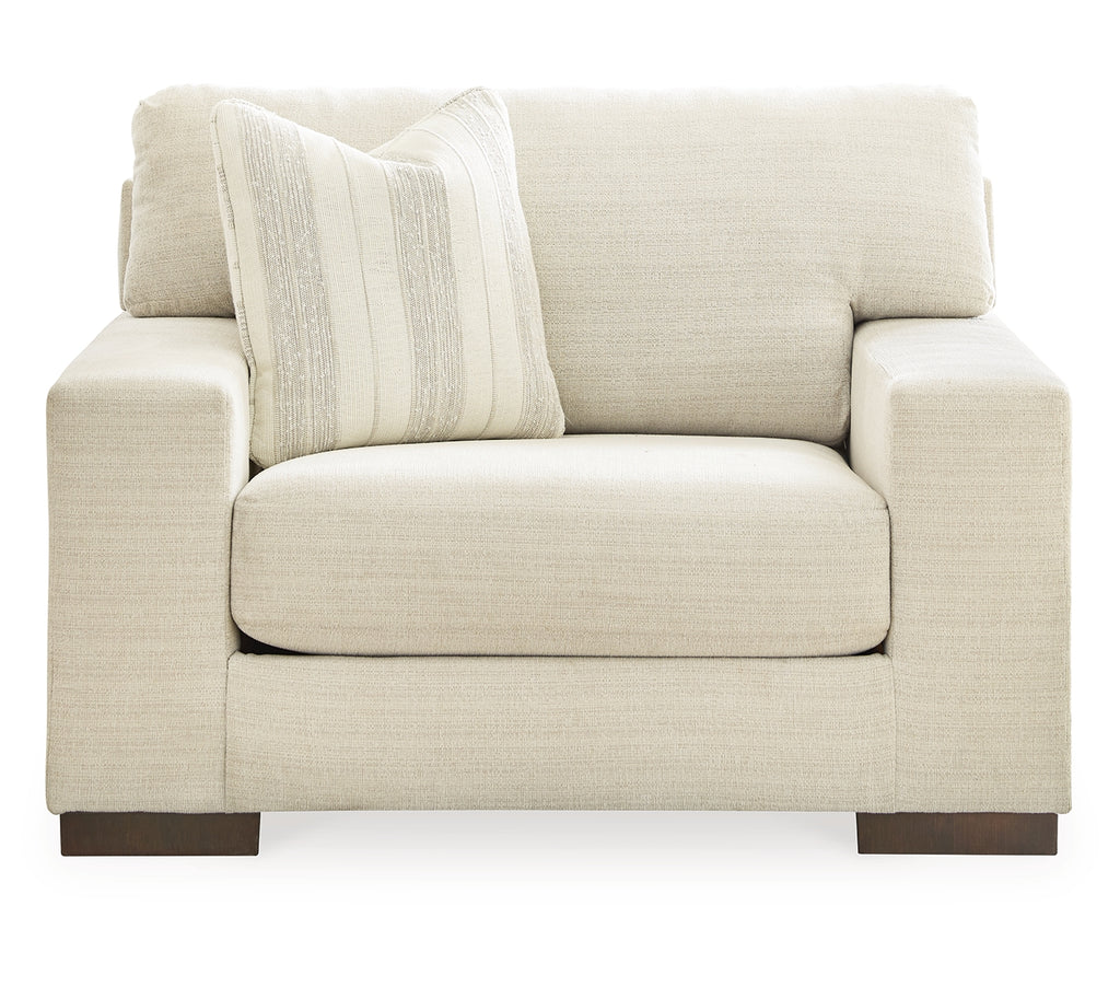 Classic comfort gets a mod twist with this oversized chair. Its minimalistic approach and structured silhouette bring a clean-lined design element to your living room. Sink into the positively plush cushions while relaxing solo, or curl up with a glass of wine while hosting guests. And with light neutral upholstery that suits both casual and contemporary spaces, this chair offers endless style possibilities. | Product Features