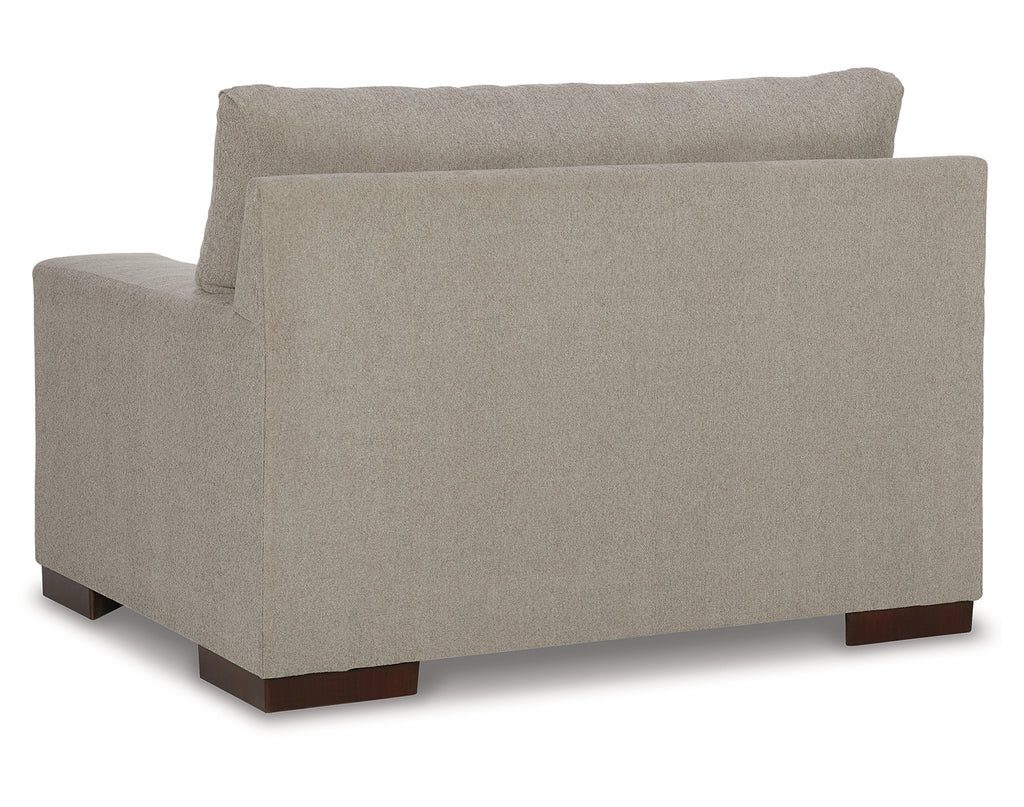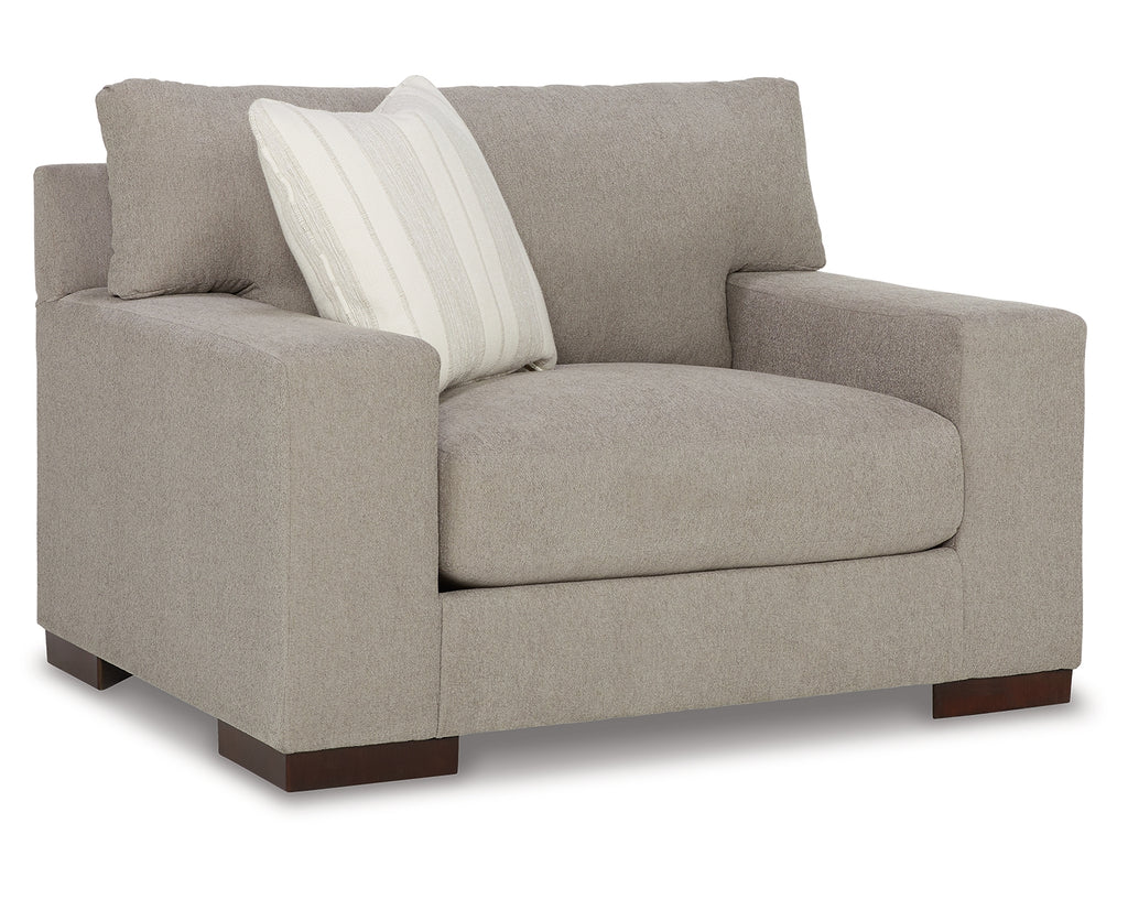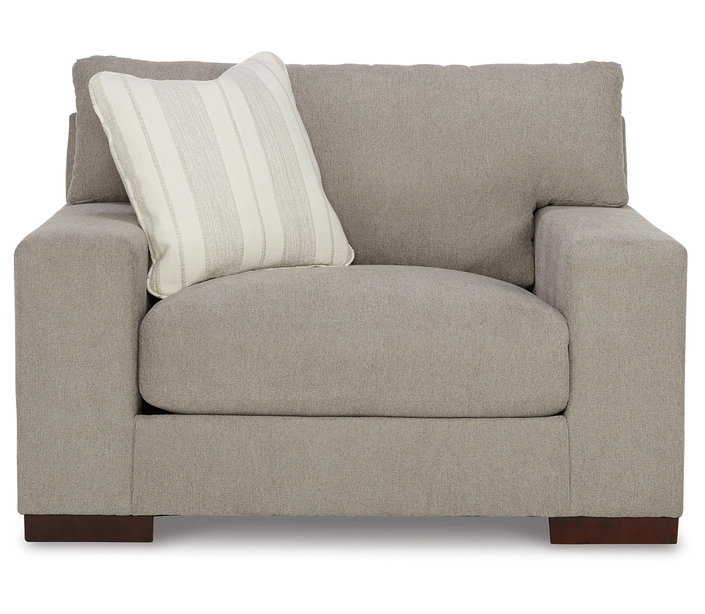 Classic comfort gets a mod twist with this oversized chair. Its minimalistic approach and structured silhouette bring a clean-lined design element to your living room. Sink into the positively plush cushions while relaxing solo, or curl up with a glass of wine while hosting guests. And with neutral upholstery that suits both casual and contemporary spaces, this chair offers endless style possibilities. | Product Features