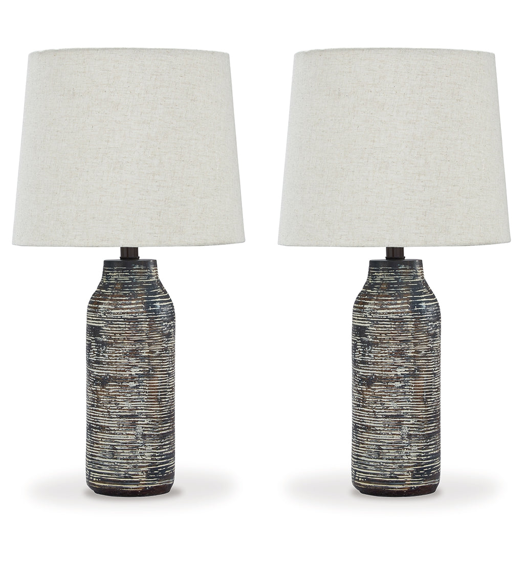 Effortless with a fashionable edge. This table lamp lights your home with urban industrial vibes. A black and white finished paper composite surrounds the base with a worn, textural aesthetic. | Product Features