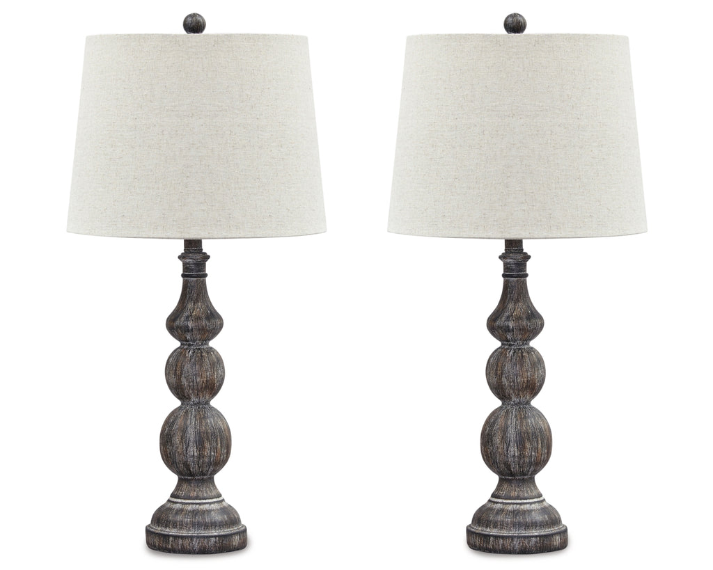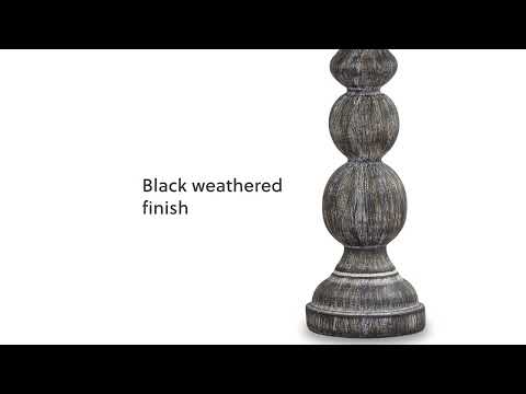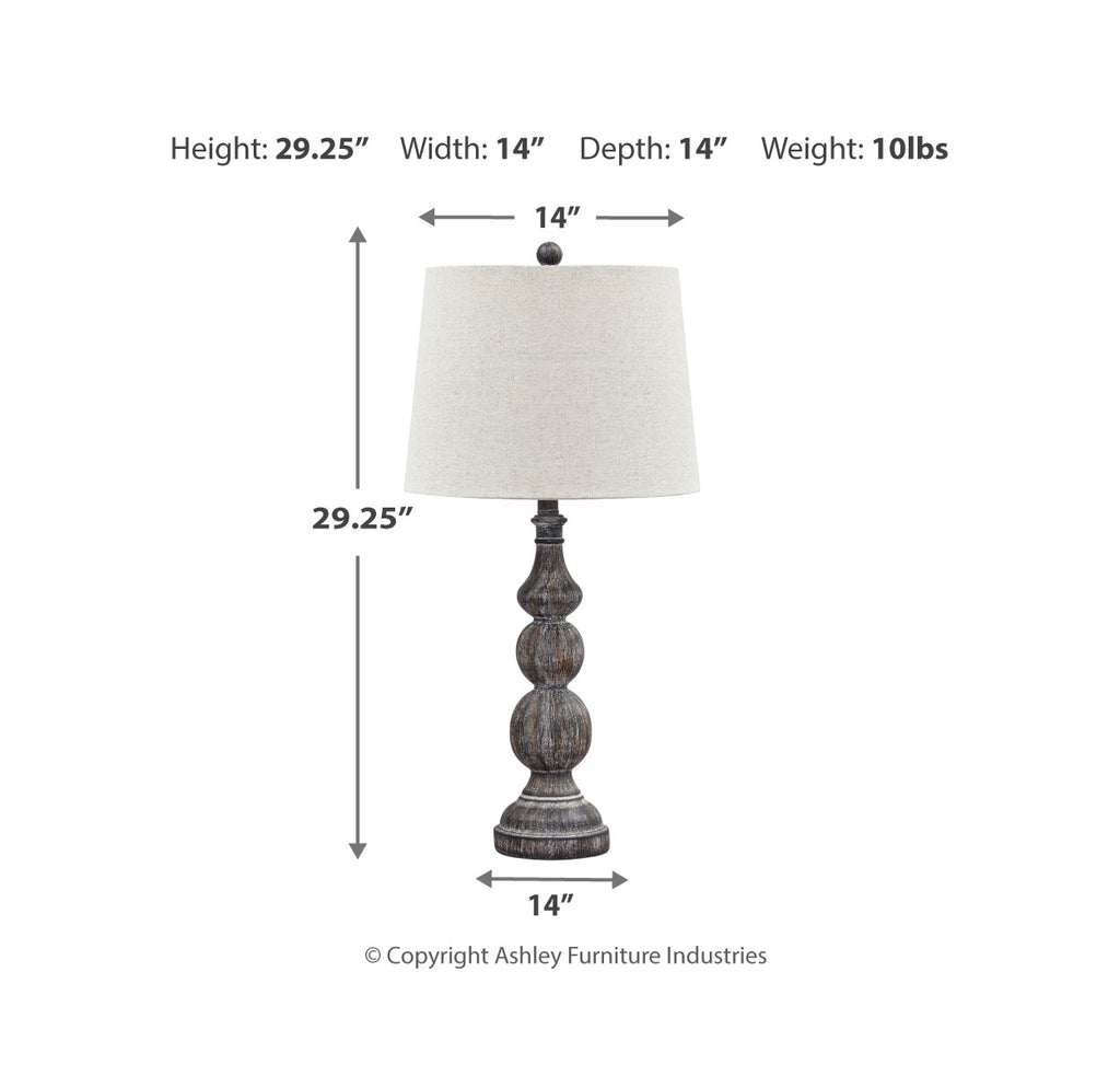 Light up your room in timeworn sophistication with this handsomely crafted table lamp. A black finish with two-tone gradations moves your eye from top to bottom. The silhouette of the lamp’s turned base contrasts beautifully against the neutral drum shade. | Product Features