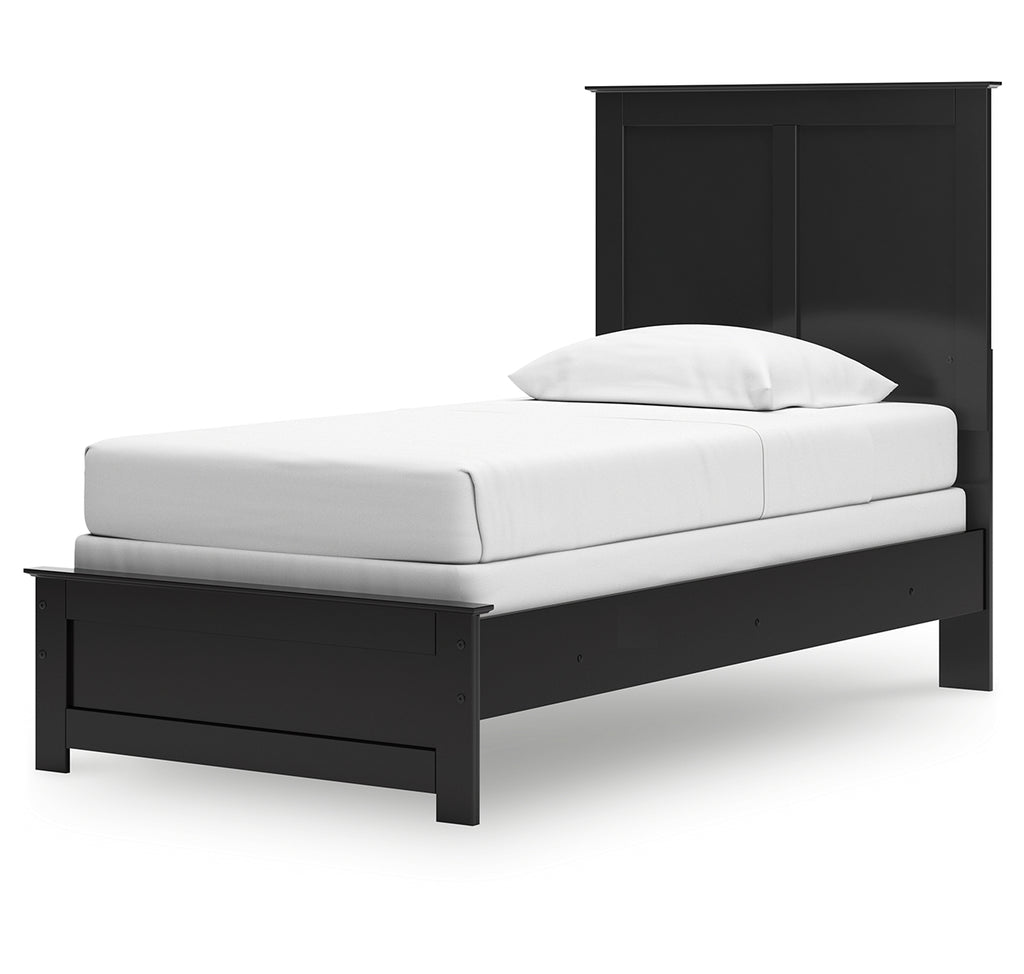 Clean, simple and beautiful. This twin panel bed masters the art of understated elegance. It’s an easy-to-love look that makes just the right statement, whether your taste leans toward classic or contemporary. And the solid black finish has the versatility to pair with a variety of styles and colors. | Product Features