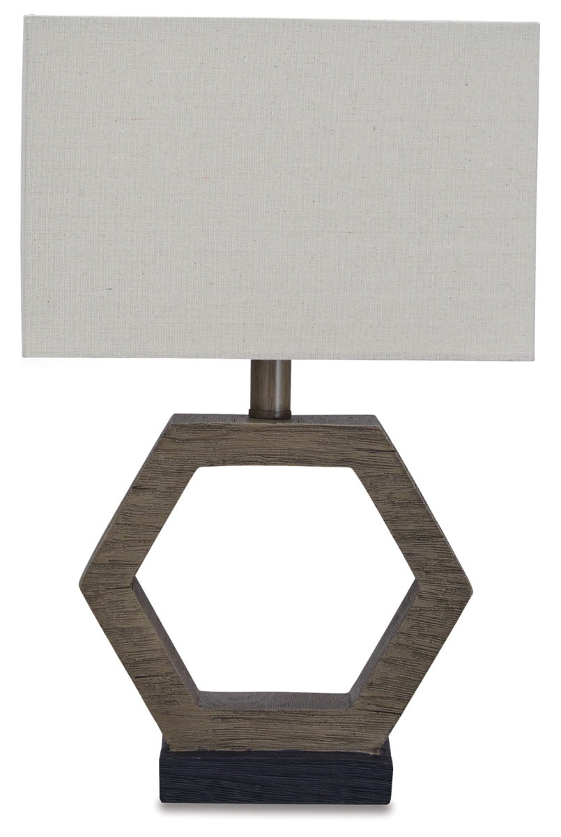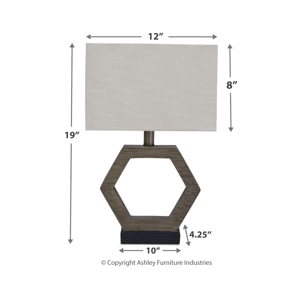 Who knew geometry could be so stylish? This table lamp's hexagonal base sports a stunning gray washed finish over faux wood. Its angular silhouette brightens up your space with the right amount of style and light. | Product Features