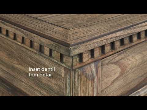 Curate a vintage-inspired retreat from the modern world without setting foot in a flea market. This dresser and mirror set is draped in a dreamy finish that enhances the wood's character, while dark pewter-tone bar pulls on smooth-gliding drawers have a hammered feel. Fluted details and robust breakfront crown moulding provide picturesque finishing touches.