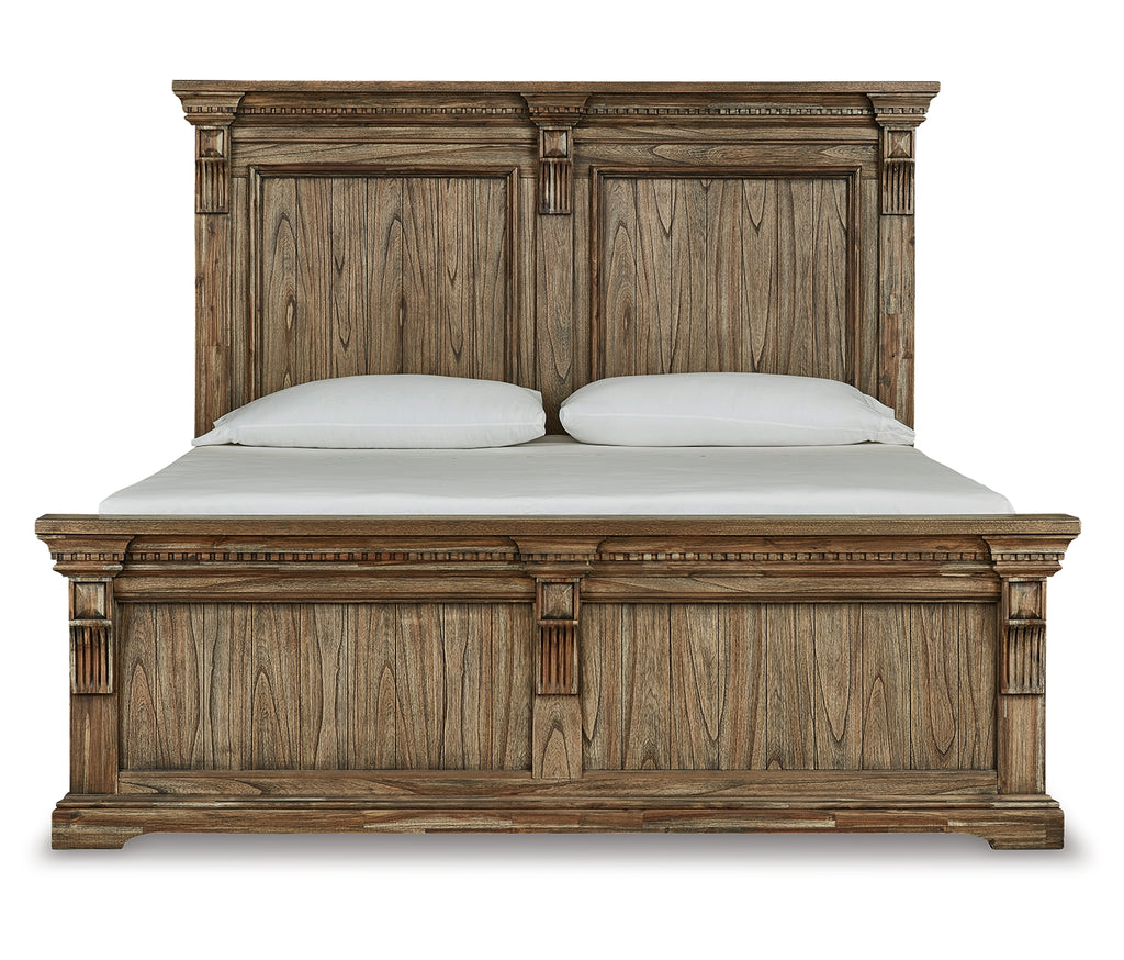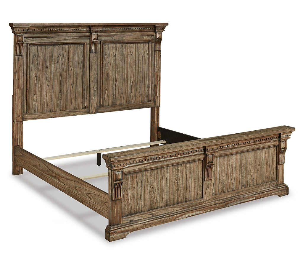 Curate a vintage-inspired retreat from the modern world without setting foot in a flea market. This king panel bed is draped in a dreamy finish that brings out the wood's natural beauty. Stylized corbels and a subtle trim provide picturesque finishing touches.