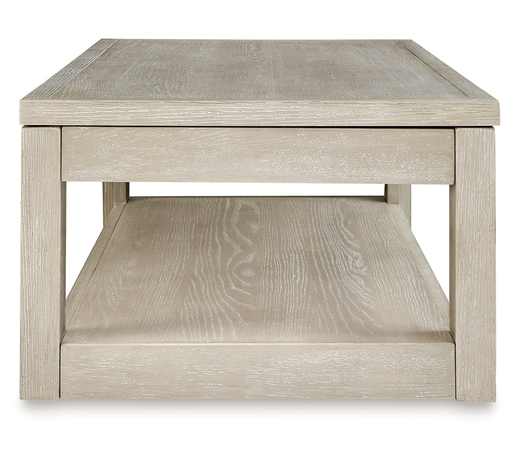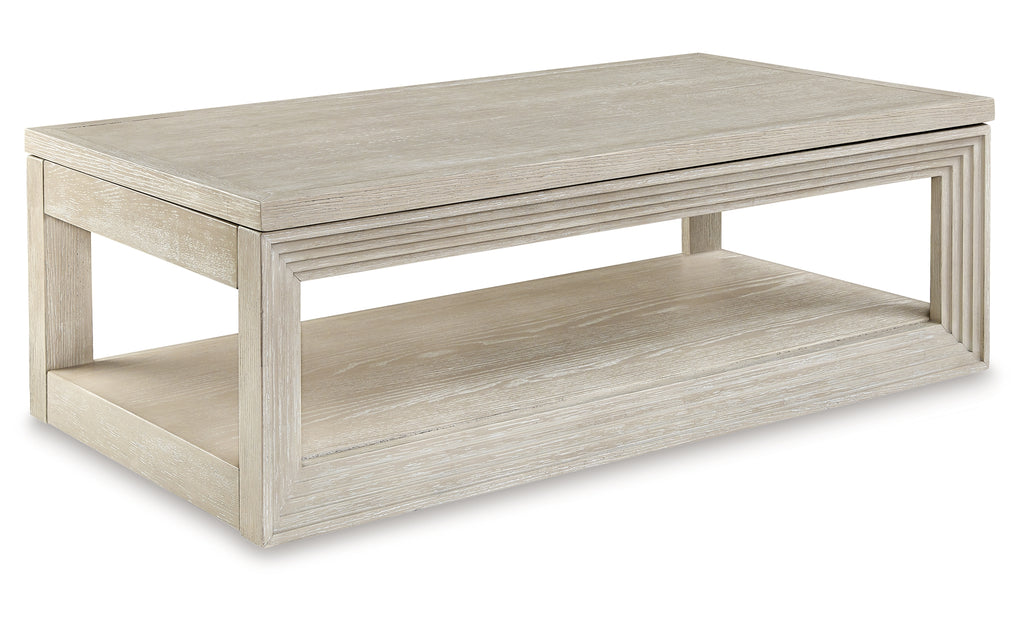 Transitional design takes on a contemporary look with this lift-top coffee table. Its trend-right glazed bisque finish elevates your interior space with a clean, modern palette. The lift top provides an additional work or dining surface as you soak in all the style. Casters let you move the table whenever and wherever you need it. | Product Features