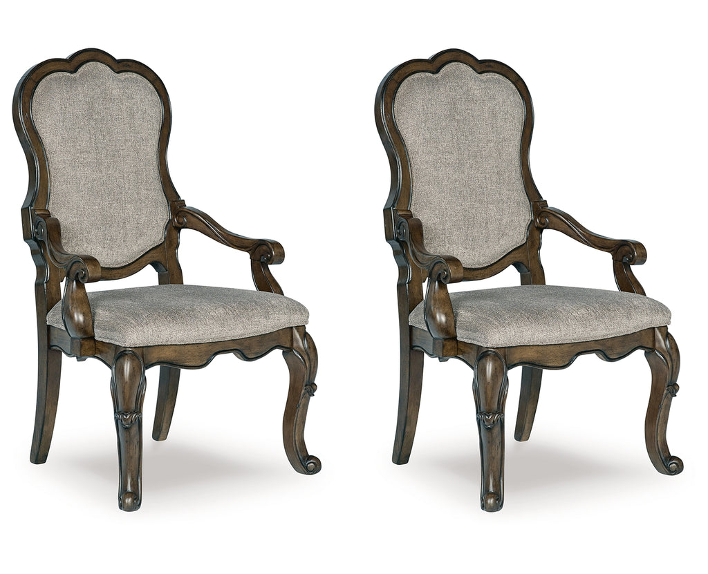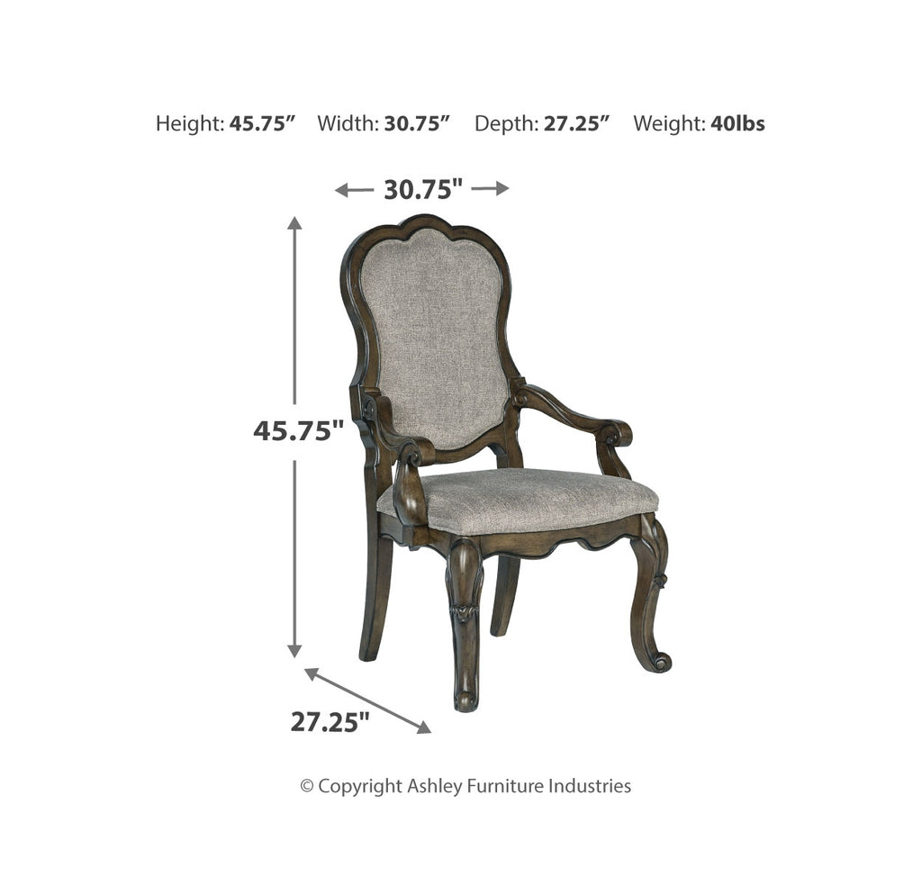 From the ornamental appliques to the large scale, this dining armchair makes a bold statement. With shapely legs and a plush cushioned seat and back, the opulent piece wows with stunning style. The look is timeless. The feel? Right at home. | Product Features
