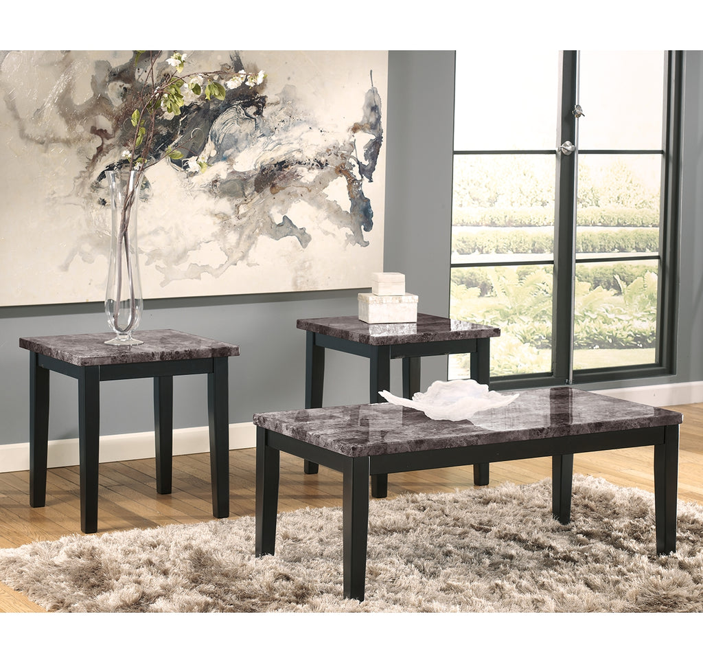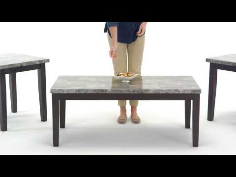 This coffee table set takes the luxe look to another level with faux marble tabletops. Bathed in a polyurethane finish on top, they’re both beautiful and practical. Sleek metal frames in a sophisticated finish create great contrast and harmony. | Product Features