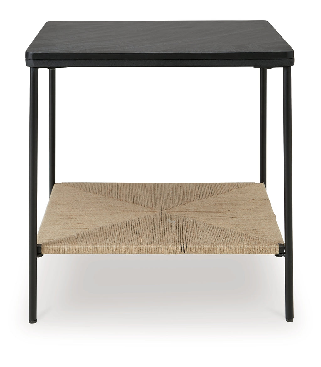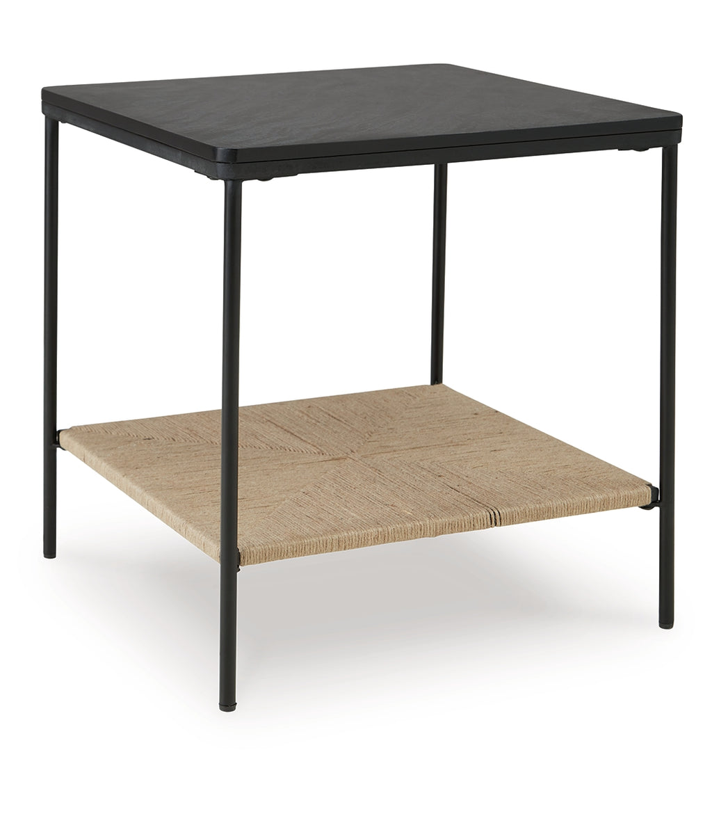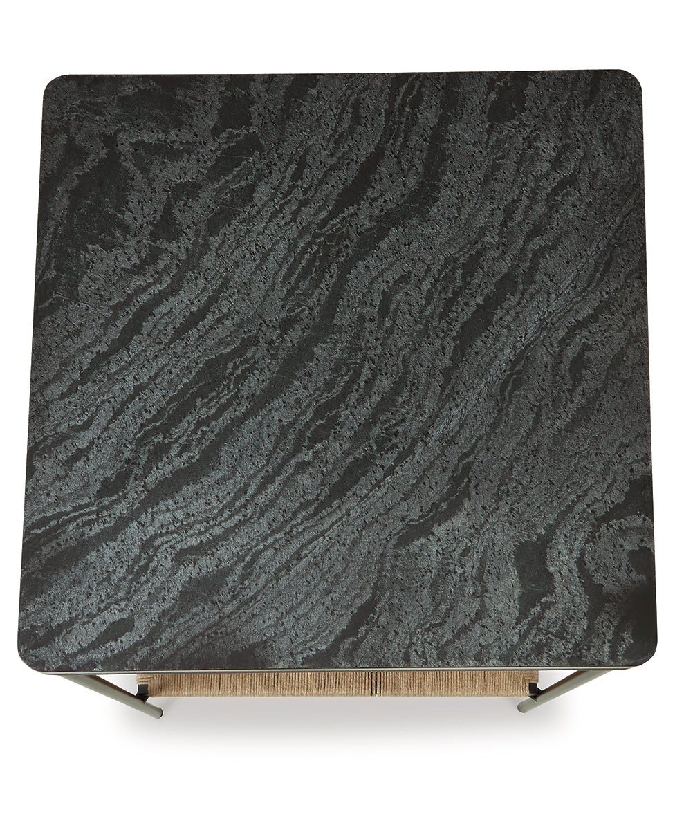 Seeking something outside the ordinary? Look no further than this casual mixed-media accent table. Its impressive black marble top and natural jute bottom shelf give the eclectic design that much more interest. Exuding a sense of ease that's sure to please, it's just the spot for displaying photos or decor accents. |