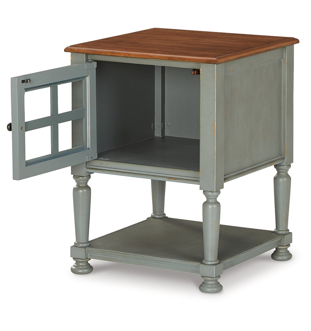 Achieve the vintage casual look you love with this accent cabinet. A stylish storage solution in antiqued gray and brown finishes, this accent cabinet completes any room. A lattice door front and open-air storage shelf create a layered look with endless possibilities. | Product Features