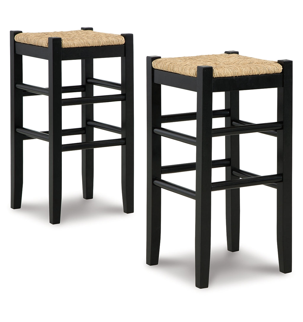 Bring the vintage casual vibe you love to the kitchen with this bar stool. A stylish seating solution in a chic black finish, this charming stool completes your dining space with ease. The woven seagrass seat and wood stretchers create an effortlessly beautiful look with endless possibilities. | Product Features