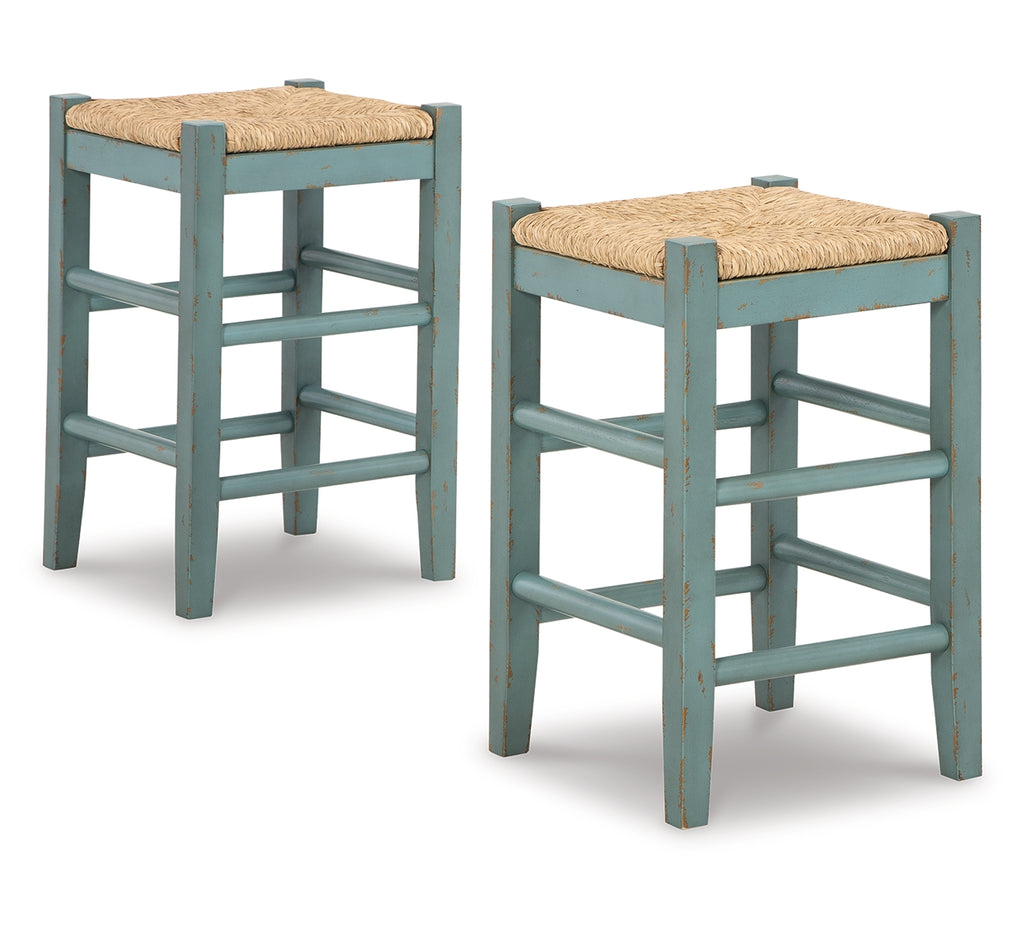 Bring the vintage casual vibe you love to the kitchen with this counter height bar stool. A stylish seating solution in a blue rubbed-through finish, this charming stool completes your dining space with ease. The woven seagrass seat and wood stretchers create an effortlessly beautiful look with endless possibilities. | Product Features