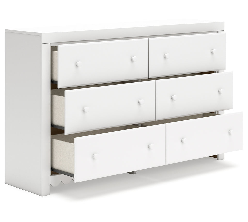 Make getting ready for the day (or bed) that much more magical with this dresser. Charmingly cute with its scalloped detailing, it appeals to both her sense of playful whimsy and your love for modern design. And the dresser's crisp white finish gives you the versatility to pair it with existing decor. | Product Features