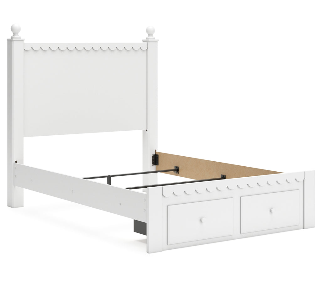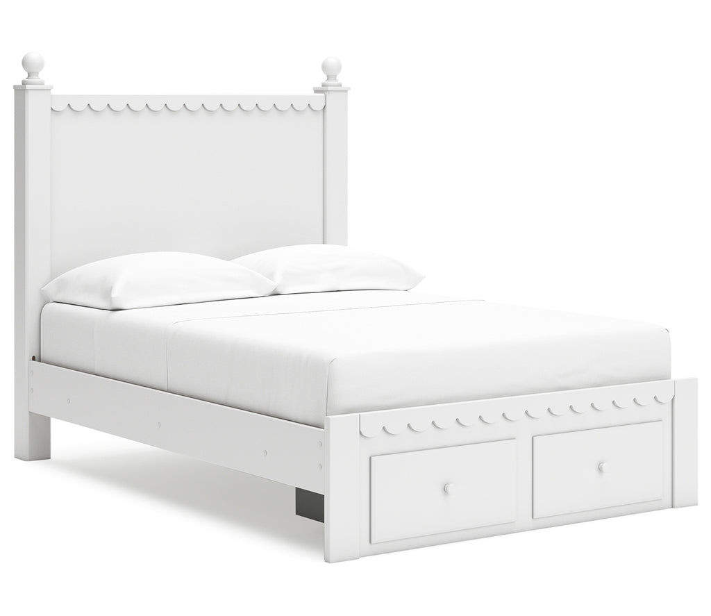 Make morning or bedtime that much more magical with this full panel storage bed. Charmingly cute with its scalloped detailing, it appeals to both her sense of playful whimsy and your love for modern design. Drawers in the footboard provide handy storage for clothes, toys and anything in between. And the bed's crisp white finish gives you the versatility to pair it with existing decor. | Product Features