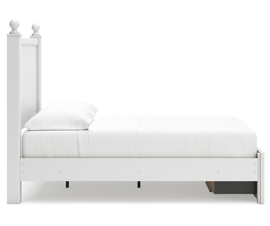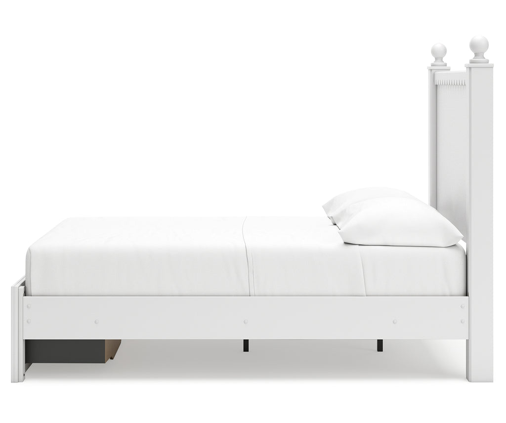 - Includes panel headboard, storage footboard and rails