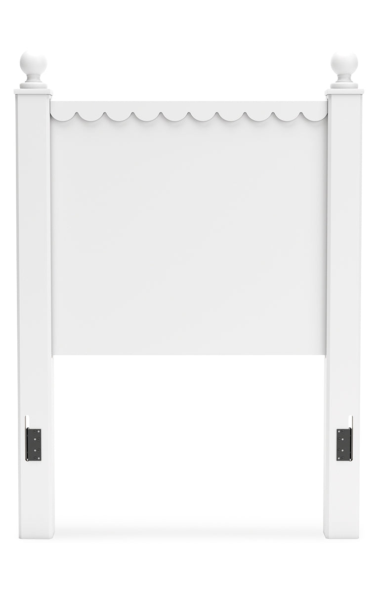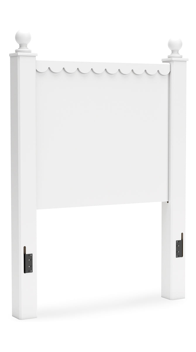 Make morning or bedtime that much more magical with this twin panel headboard. Charmingly cute with its scalloped detailing, it appeals to both her sense of playful whimsy and your love for modern design. And the headboard's crisp white finish gives you the versatility to pair it with existing decor. | Product Features