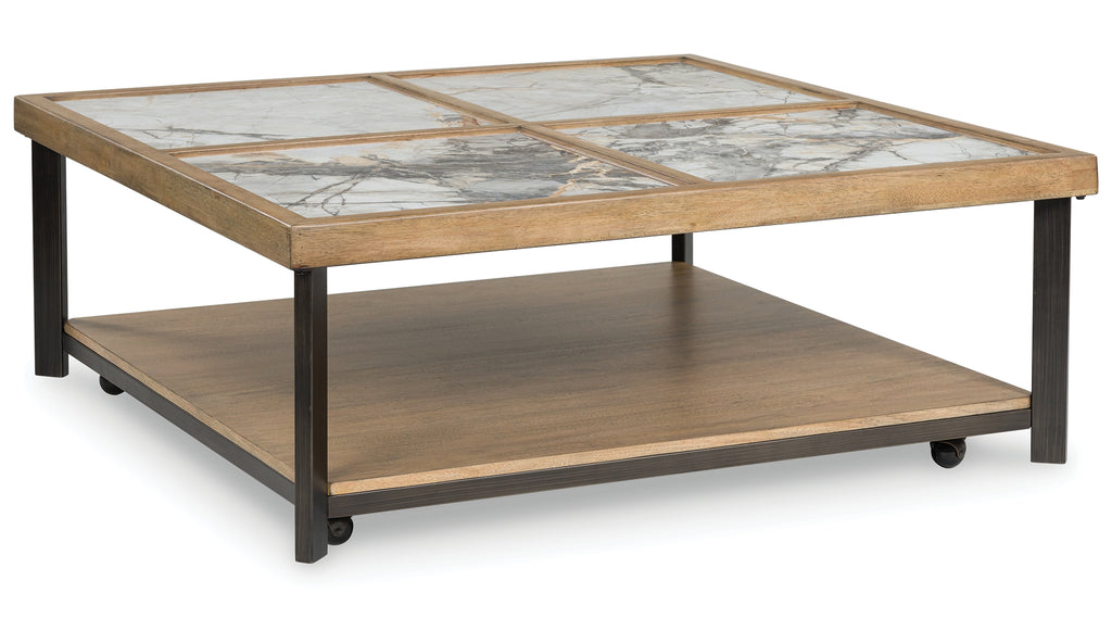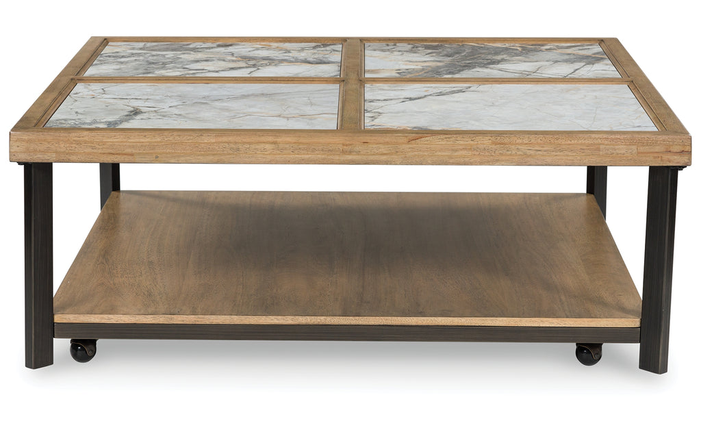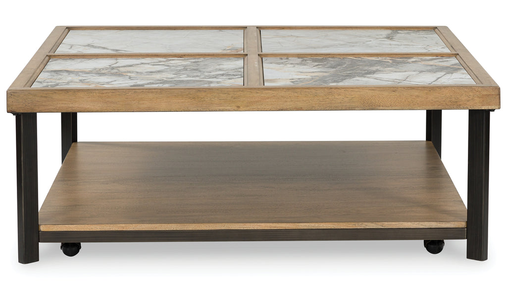 Crafted with the utmost attention to detail, this coffee table boasts premium materials that ensure both durability and elegance. The tabletop's sintered stone tile not only creates a visually appealing look but also enhances the table's robustness. Casters allow you to effortlessly rearrange your living area whenever you desire. Whether you're hosting guests or unwinding with a steaming cup of coffee, this table instantly adds a touch of sophistication to your living space. | Product Features